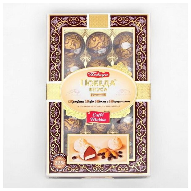Кондитерская фабрика Победа выпустила новый продукт. Шоколадные трюфели Победа Вкуса с марципаном. Мы надеемся, что вы по достоинству оцените вкус шоколадных трюфелей с Кофе Мокка марципаном в горьком шоколаде и сливочной пудре , который доставит вам неповторимое, утонченное наслаждение.