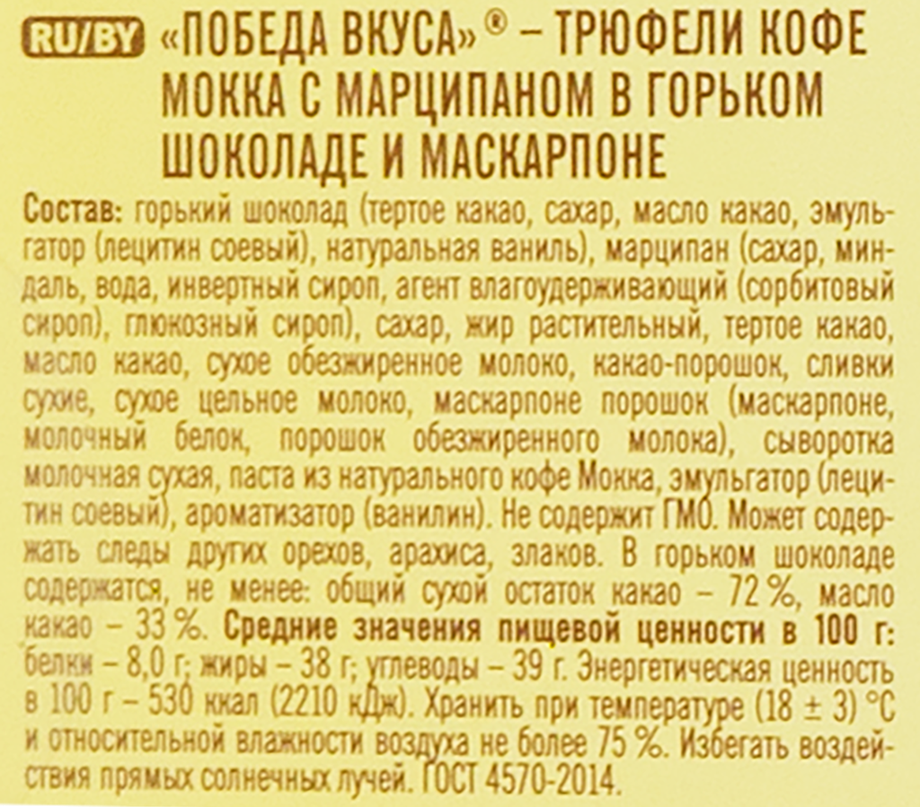 Сервис сравнения цен СкидкаГИД предлагает сравнить цены на товар «Конфеты Победа Вкуса трюфели кофе мокка с марципаном 225 г»