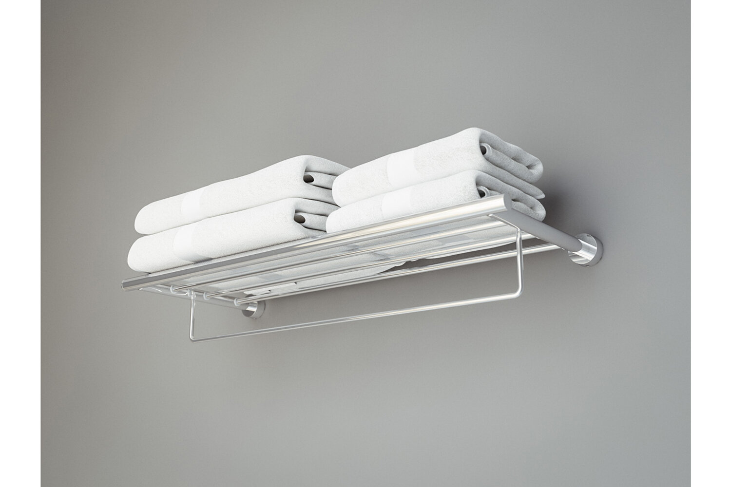 NOS 042 Полка для полотенец с тремя дополнительными перекладинами позволит вам разместить большое количество предметов одежды и белья, экономя немало полезного пространства в ванной комнате. Хромированная латунь не подвержена ржавчине и загрязнениям.