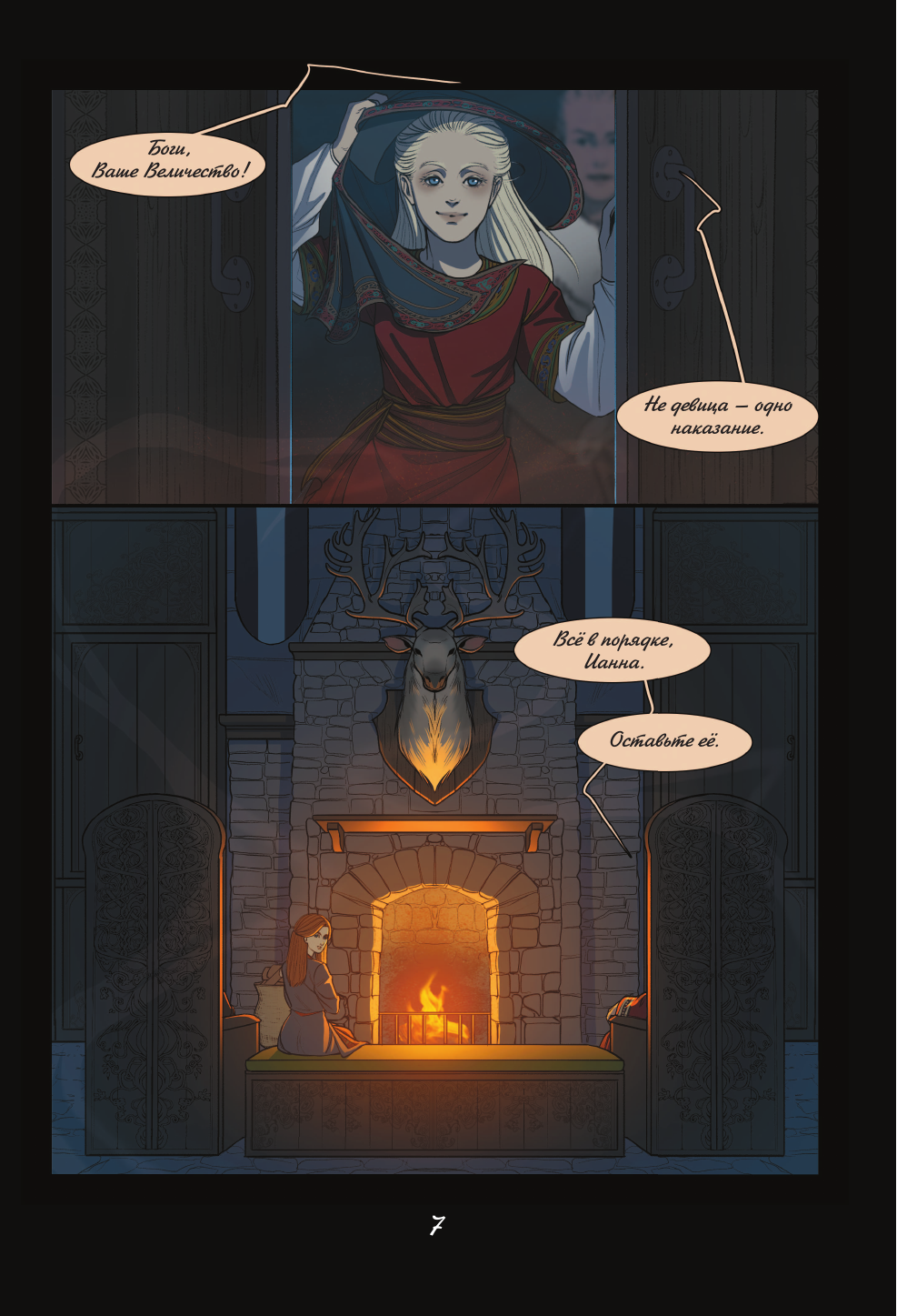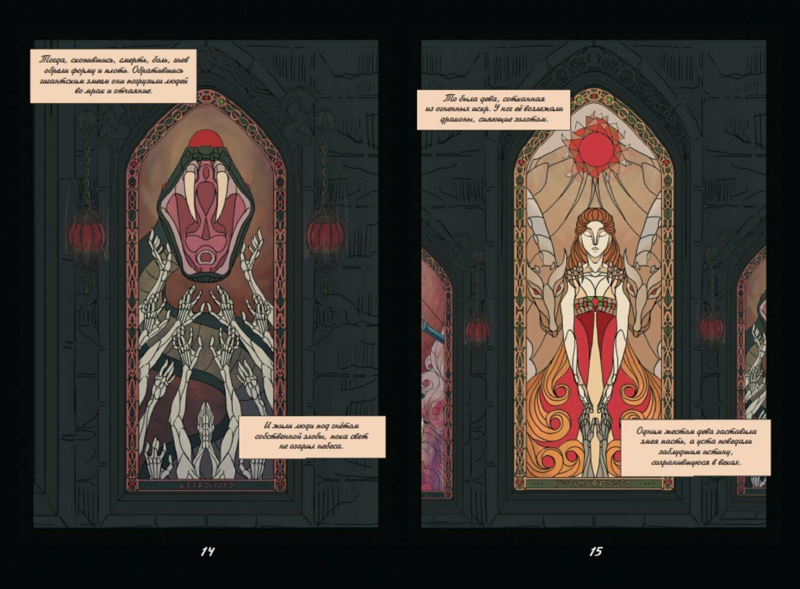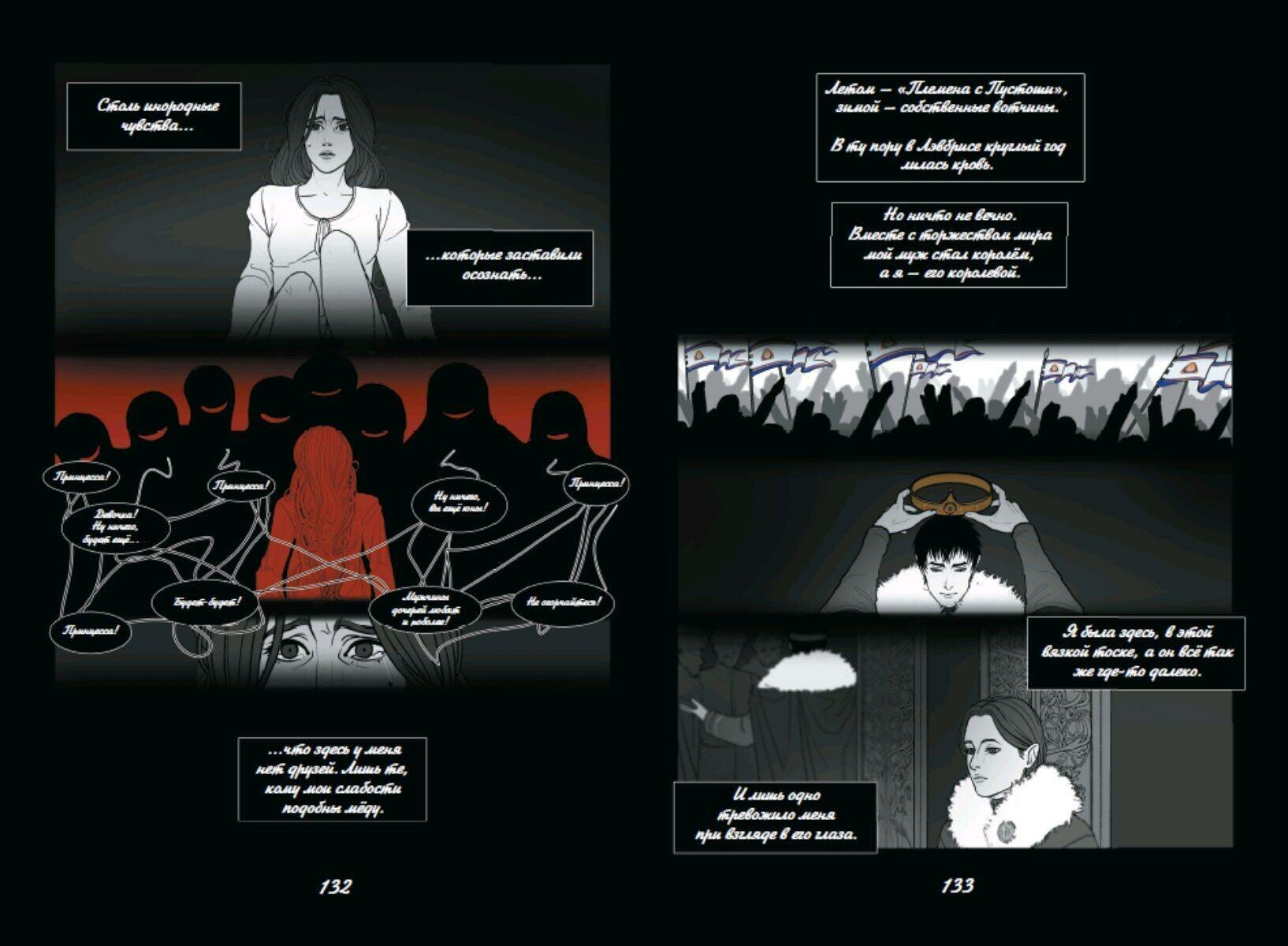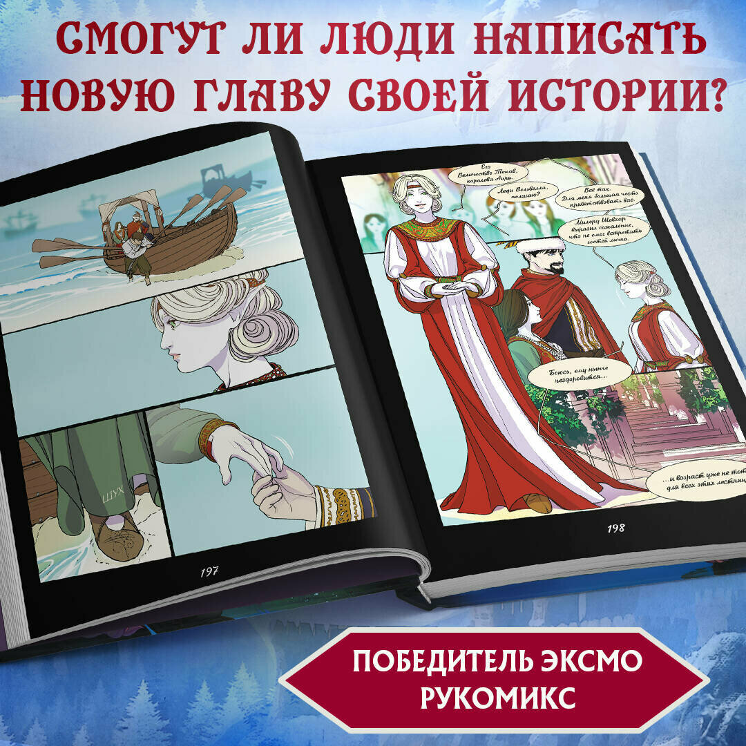 Работа победителя конкурса Эксмо. РУкомикс в номинации "Магический мир". Первая часть фэнтези-комикса о битвах за земли и славу, дворцовых интригах, магии, потаенных желаниях и мире, что идет к краху. Когда-то люди были полны гнева и способны только на разрушение. Ненависть и боль, скопившиеся в их сердцах, пробудили ужасного монстра. Человечество погрузилось во мрак и отчаянье. Спасением стали Истинные Боги, которые подарили людям способность созидать. С тех пор прошло много лет, и люди вновь идут с мечом друг на друга. Человеческая жизнь снова начинает терять свою ценность, затмеваемая жаждой власти и богатств. Так, вступив в брак ради политического союза, Аири стойко переносит свою действительность, полную горестей и лишений. Однако, когда ее семье на Юге требуется помощь, ее муж, король Лэвбриса, Тенав, не торопится поддержать своих родственников и союзников. Представительница эльфов леди Вельвелла готова на все, чтобы не дать своему народу вновь пасть жертвой сумасбродных людей у власти. Именно поэтому она опасается Южного Владыку Аарата. Тысячи судеб по воле богов неразрывно сплетутся между собой. Обречены ли люди повторять ошибки прошлого или они в силах написать новую главу в истории мира?