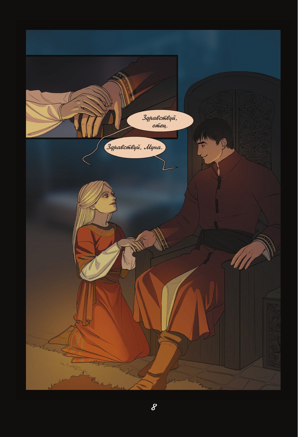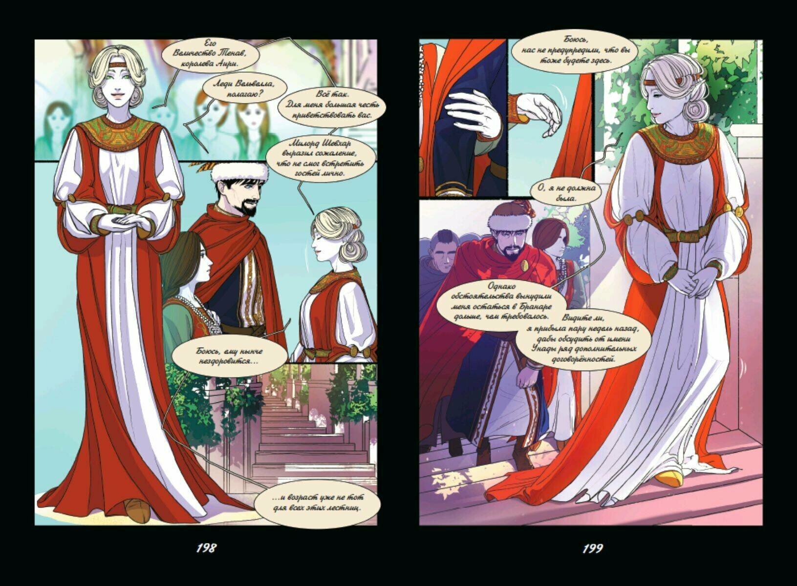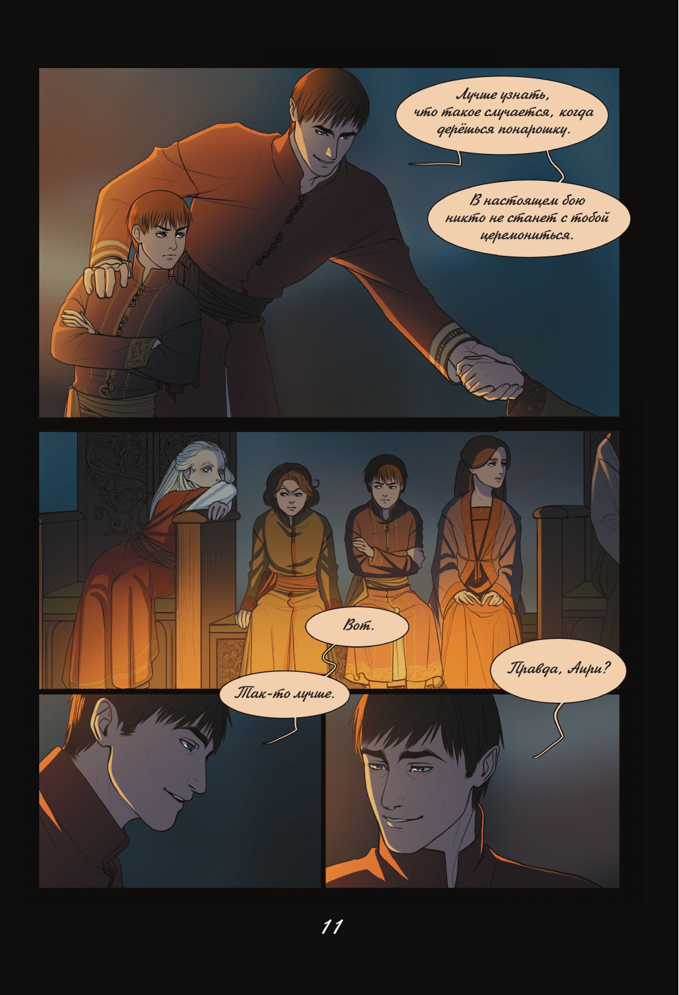 Работа победителя конкурса Эксмо. РУкомикс в номинации "Магический мир". Первая часть фэнтези-комикса о битвах за земли и славу, дворцовых интригах, магии, потаенных желаниях и мире, что идет к краху. Когда-то люди были полны гнева и способны только на разрушение. Ненависть и боль, скопившиеся в их сердцах, пробудили ужасного монстра. Человечество погрузилось во мрак и отчаянье. Спасением стали Истинные Боги, которые подарили людям способность созидать. С тех пор прошло много лет, и люди вновь идут с мечом друг на друга. Человеческая жизнь снова начинает терять свою ценность, затмеваемая жаждой власти и богатств. Так, вступив в брак ради политического союза, Аири стойко переносит свою действительность, полную горестей и лишений. Однако, когда ее семье на Юге требуется помощь, ее муж, король Лэвбриса, Тенав, не торопится поддержать своих родственников и союзников. Представительница эльфов леди Вельвелла готова на все, чтобы не дать своему народу вновь пасть жертвой сумасбродных людей у власти. Именно поэтому она опасается Южного Владыку Аарата. Тысячи судеб по воле богов неразрывно сплетутся между собой. Обречены ли люди повторять ошибки прошлого или они в силах написать новую главу в истории мира?