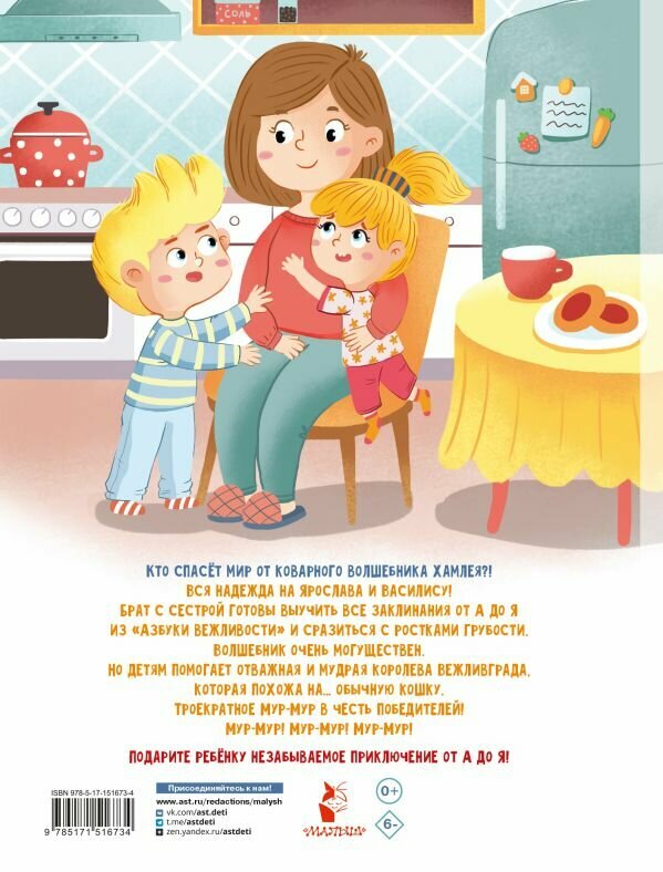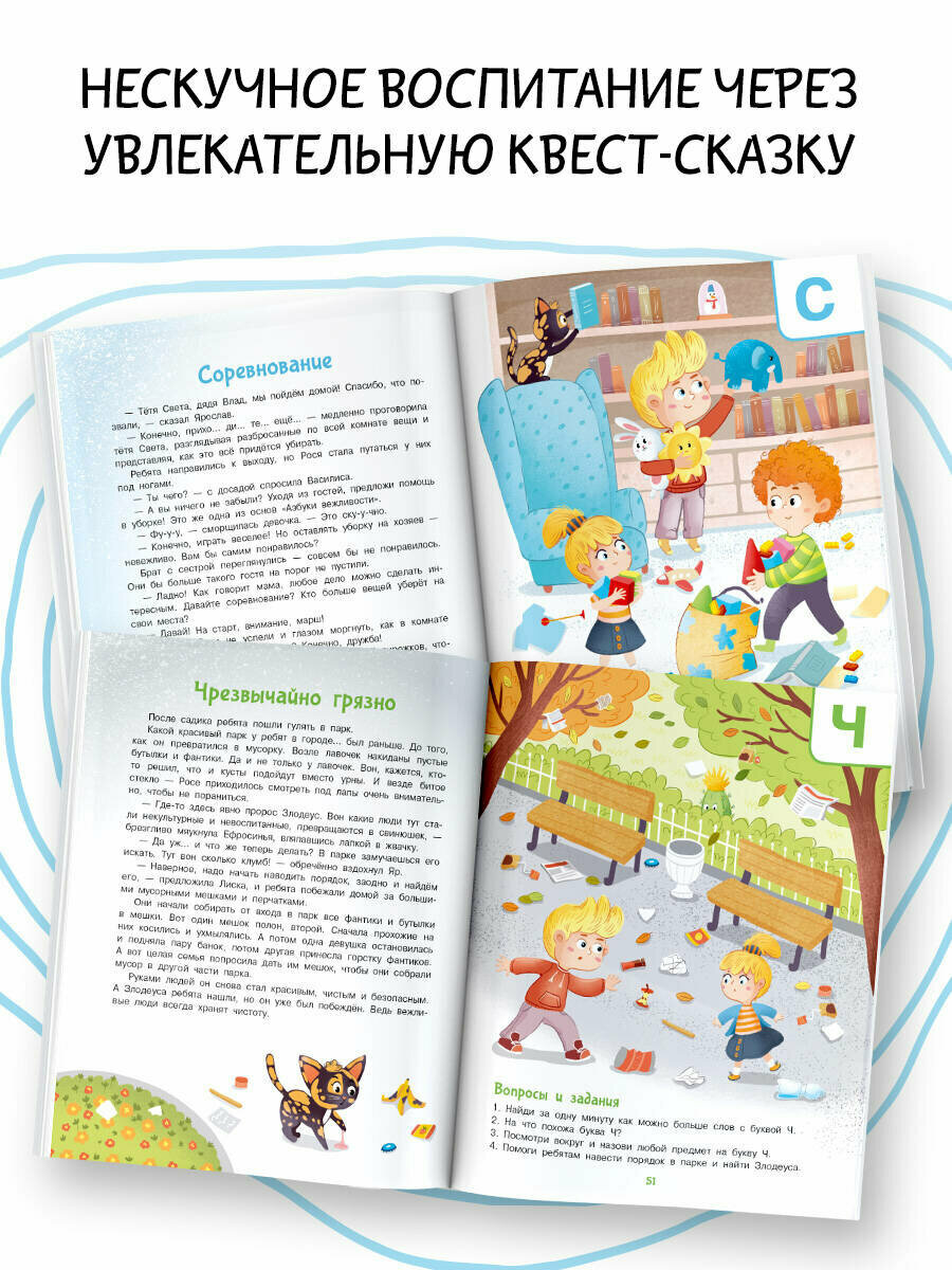 Азбука - главная книга, которая вводит ребенка в огромный мир букв, слов, мировой литературы. Очень важно, чтобы первое знакомство с буквами было успешным, понравилось малышу, вдохновило его пройти непростой путь формирования навыка чтения. В этой книге вместе с непоседливыми ребятами Ярославом и Василисой и говорящей кошечкой Росей малыши отправятся в удивительный мир Вежливграда, чтобы спасти его от происков злого волшебника и его ужасных заклятий. Захватывающие приключения и полезные задания, придуманные психологом и сказкотерапевтом Ириной Терентьевой помогут малышам научиться хорошим манерам. Через форму волшебной истории ребята легко усвоят правила поведения, станут добрыми и отзывчивыми и полюбят чтение. Красочные иллюстрации Надежды Корнеевой перенесут в мир детства. Для дошкольного возраста.