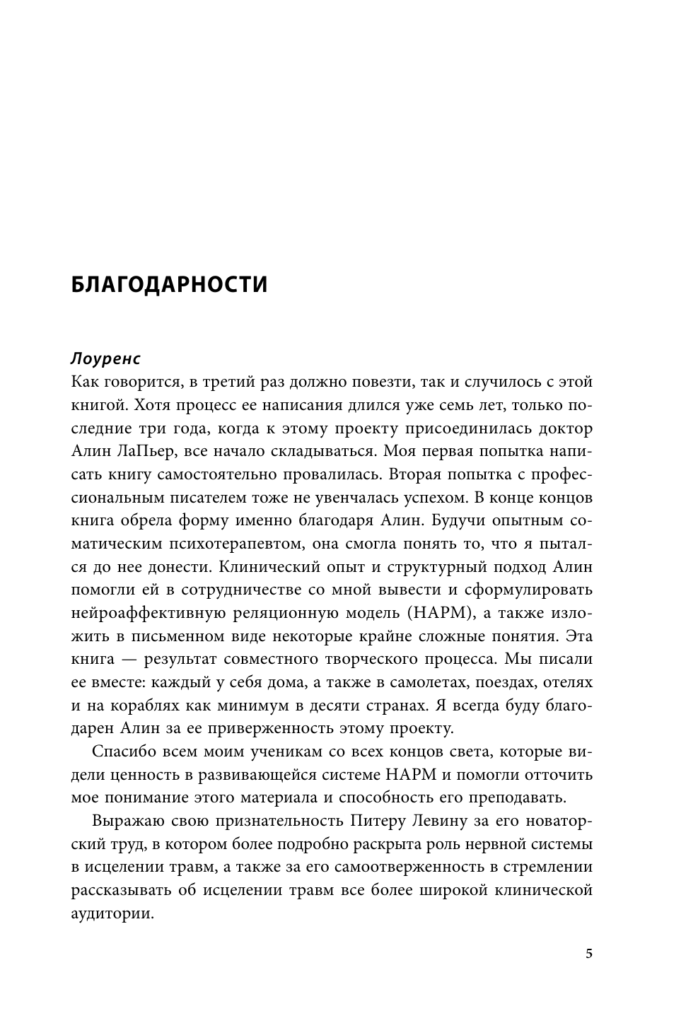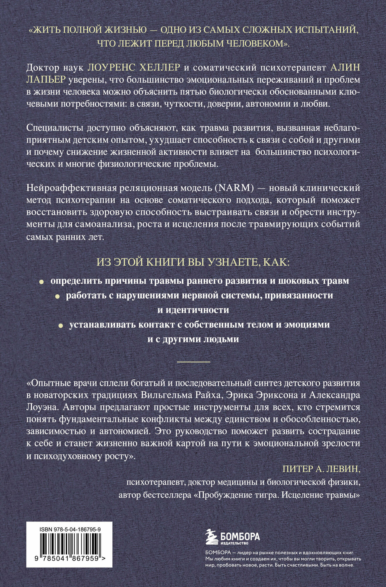 "Жить полной жизнью - одно из самых сложных испытаний, что лежит перед любым человеком". Доктор наук Лоуренс Хеллер и соматический психотерапевт Алин ЛаПьер уверены, что большинство эмоциональных переживаний и проблем можно объяснить пятью биологически обоснованными ключевыми потребностями: в связи, чуткости, доверии, автономии и любви. Специалисты доступно объясняют, как травма развития, вызванная неблагоприятным детским опытом, ухудшает способность к связи с собой и другими и почему снижение жизненной активности влияет на большинство психологических и многих физиологических проблем. Нейроаффективная реляционная модель (NARM) - новый клинический метод психотерапии на основе соматического подхода, который поможет восстановить здоровую способность выстраивать связи и обрести инструменты для самоанализа, роста и исцеления после травмирующих событий даже самых ранних лет. Из этой книги вы узнаете, как: - определить причины травмы раннего развития и шоковых травм; - работать с нарушениями нервной системы, привязанности и идентичности; - устанавливать контакт с собственным телом и эмоциями и с другими людьми; - восстановить саморегуляцию, самоощущение и самооценку.