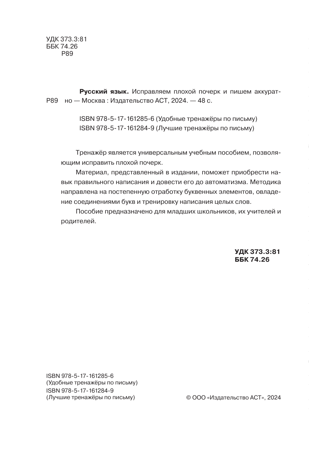 Русский язык. Исправляем плохой почерк и пишем аккуратно (Группа авторов); Издательство АСТ, 2024