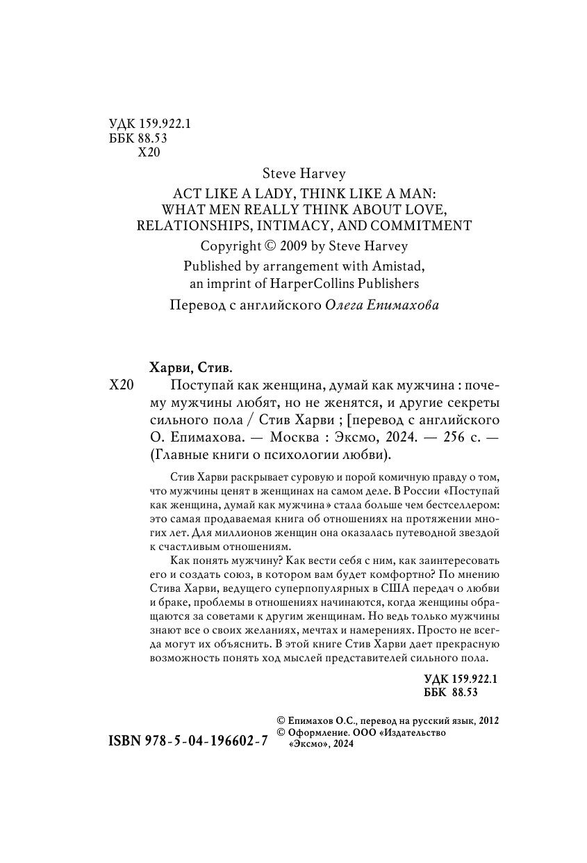 Поступай как женщина думай как мужчина. Почему мужчины любят но не женятся и другие секреты сильного пола (Харви Стив); ООО "Издательство "Эксмо", 2024