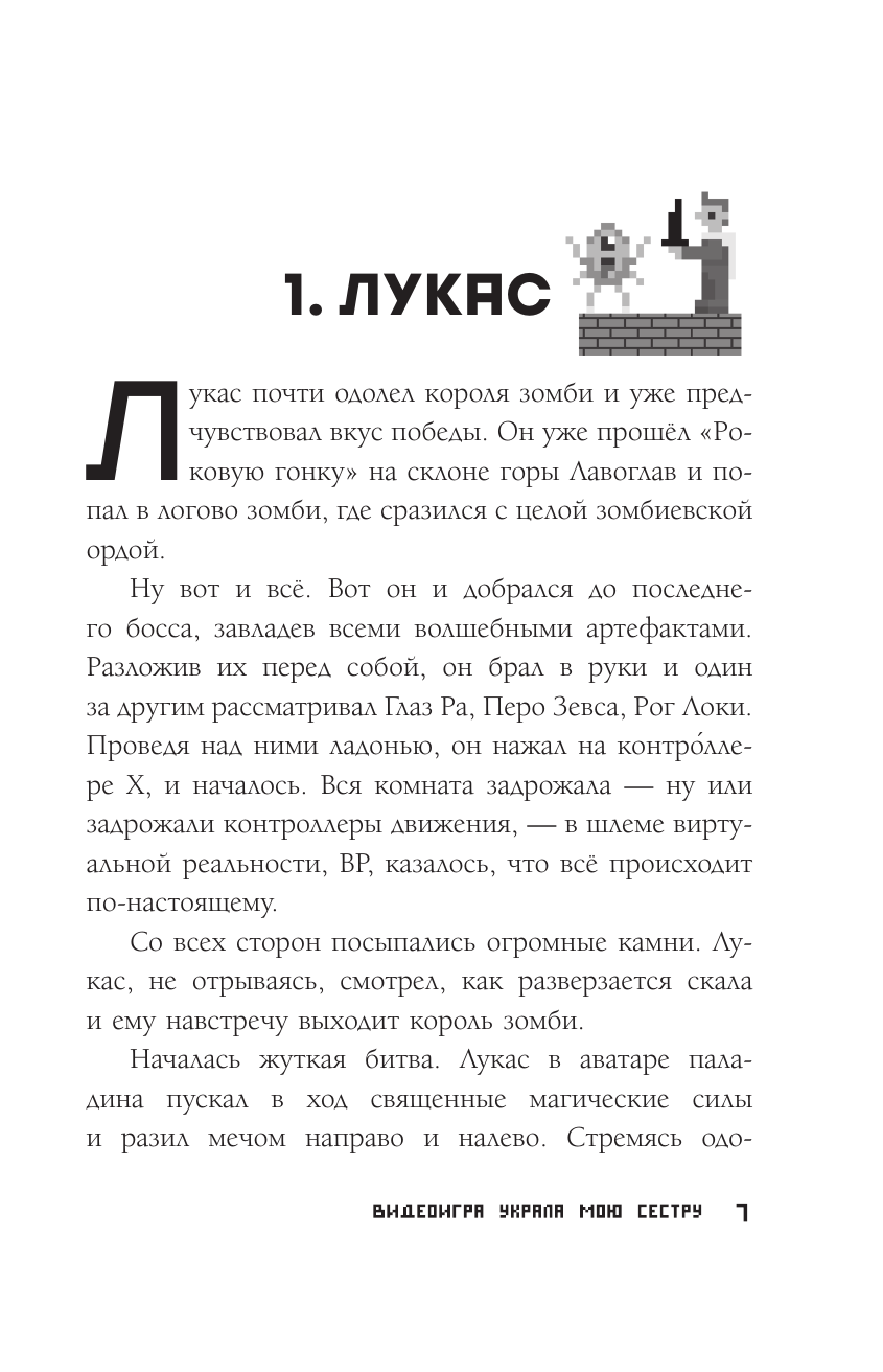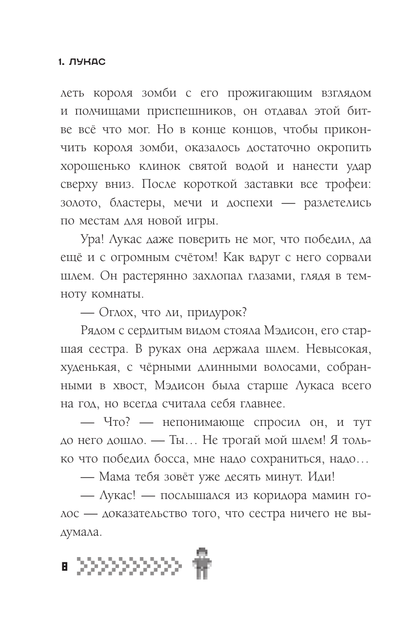 Лукас, как все подростки, обожает играть в VR: сражаться с зомби, участвовать в гонках, собирать волшебные артефакты. И конечно же, главная цель - как можно скорее набрать побольше очков и победить босса! Но однажды он обнаруживает, что его сестра пропала. Что-то не так! Неужели это видеоигра похитила её? Ему предстоит сразиться с монстрами, спасти свою сестру и сделать выбор, от которого будет зависеть очень многое. Но удастся ли им вернуться в реальный мир? И чем обернётся это полное опасностей приключение? Супердинамичная история от сценариста игр Minecraft: Story Mode и Avengers Academy!