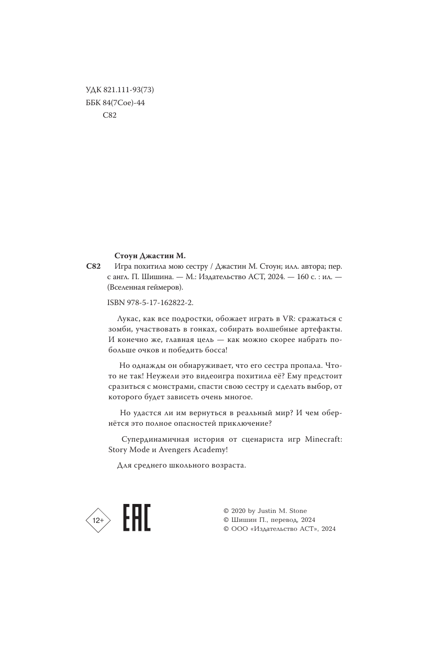Книга: Игра похитила мою сестру (Джастин М. Стоун); Издательство АСТ, 2020