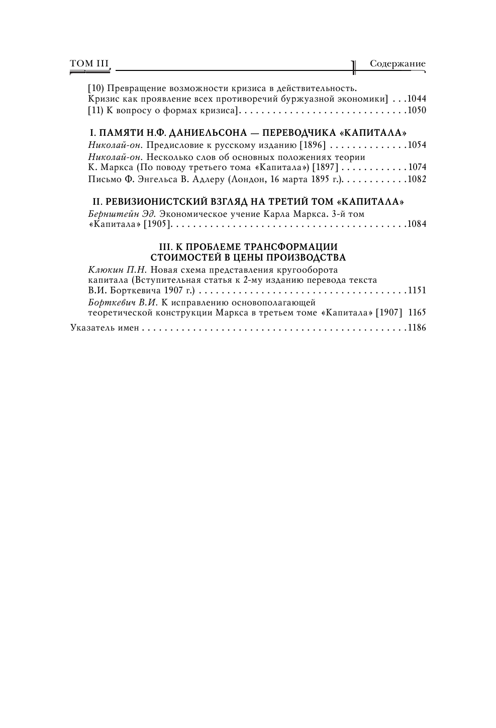Издание третьего тома завершает публикацию "Капитала" Карла Маркса. В нем читателя ждет обсуждение проблем, актуальных и для современной науки: теории цен производства, ренты и прибыли, концепции рынка и кризисов в условиях капитализма, формулировку и обоснование закона тенденции нормы прибыли к понижению, ряд интересных соображений Маркса о капиталистической конкуренции. При работе над изданием был учтен опыт как классических советских изданий, так и последнего немецкого издания в рамках международного проекта MEGA. Текст III тома публикуется с уточненным переводом ряда мест и комментариями, очищенными от тенденциозных оценок прежних лет. В приложении публикуются фрагменты из "Теорий прибавочной стоимости", посвященные анализу теорий ренты и издержек производства Д. Рикардо, а также соответствующий проблематике III тома фрагмент главы о капитале из "Грундриссе". Текст III тома сопровожден двойной пагинацией на полях, а также указателем имен, уточненным по последнему немецкому изданию. В книгу добавлены также отдельные подразделы, раскрывающие многогранность и сложность проблемного поля III тома "Капитала". Один подраздел посвящен памяти и труду замечательного нашего переводчика "Капитала" и экономиста Н.Ф. Даниельсона (1844-1918), впервые представившего текст III тома русской публике в 1896 г. Второй подраздел образует крайне малоизвестный в России текст 1905 г. одного из самых глубоких представителей тогдашнего ревизионизма Эд. Бернштейна (1850-1932). Третий подраздел составлен из классики количественной трактовки I и III томов "Капитала" – перевода оригинальной статьи 1907 г. (с ее современным осмыслением) видного представителя российской аналитической традиции, статистика и экономиста с мировым именем В.И. Борткевича (1868-1931). Для экономистов, социологов, историков экономической мысли, аспирантов и студентов, а также всех интересующихся наследием классиков экономической науки.