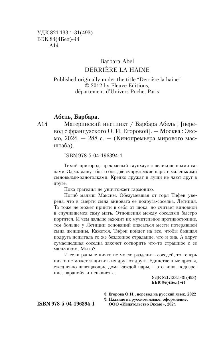Книга: Материнский инстинкт (Барбара Абель); Эксмо, Редакция 1, 2024