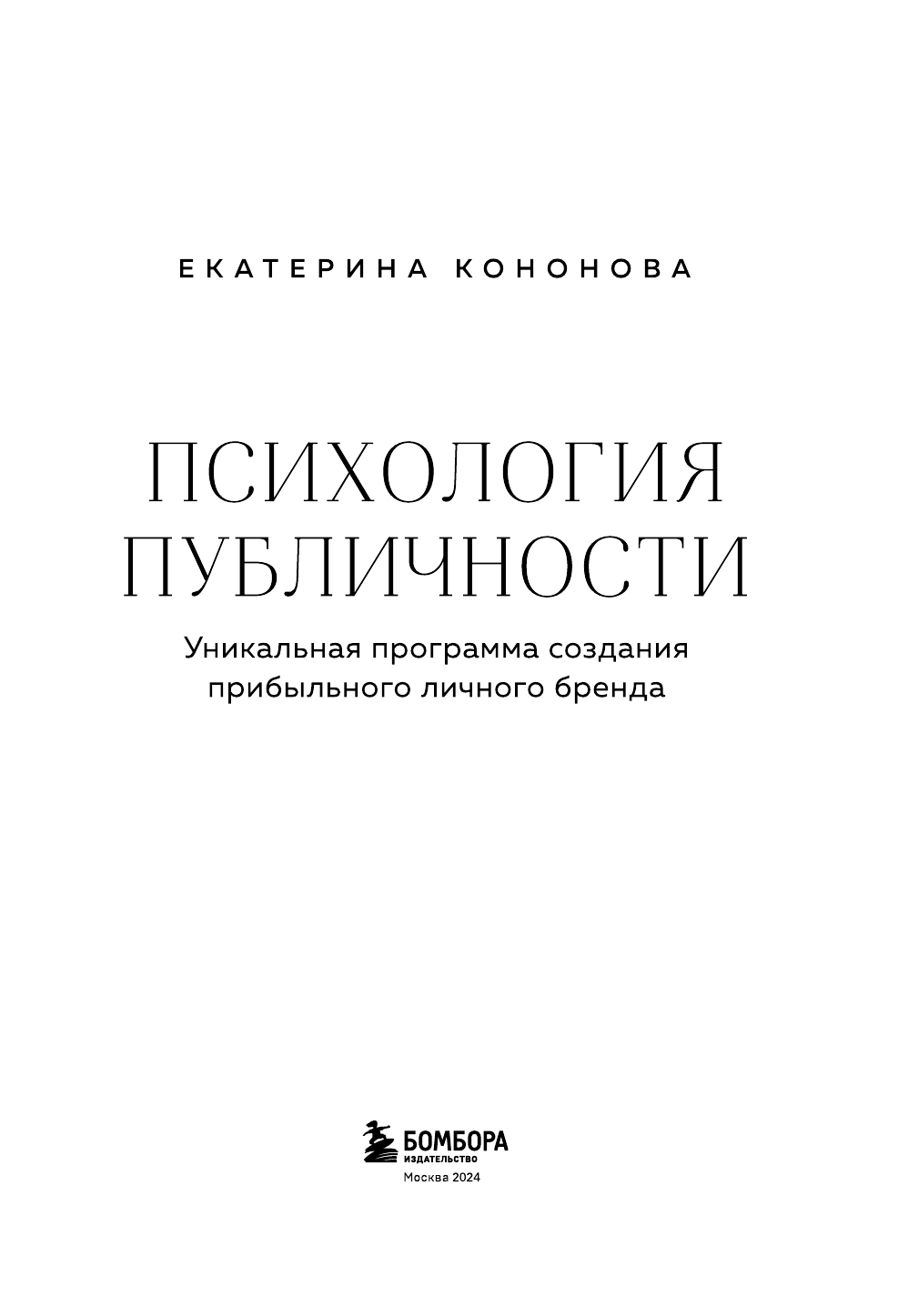 Книга: Психология публичности (Кононова Екатерина Александровна); Бомбора, 2024