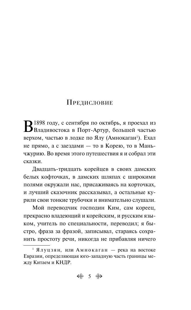 В 1898 году русский инженер Николай Гарин-Михайловский отправился в Порт-Артур. По пути он посетил Корею и Манчжурию. Именно там он собрал эти сказки — сокровищницу корейского фольклора, дошедшую до наших дней. Сказки познакомят вас с царем зверей, мудрым тигром, с хитрыми монахами и смекалистыми героями, которые всегда выйдут сухими из воды. Уникальный сборник познакомит нас с культурой Древнего Востока, его верованиями, обрядами и обычаями.