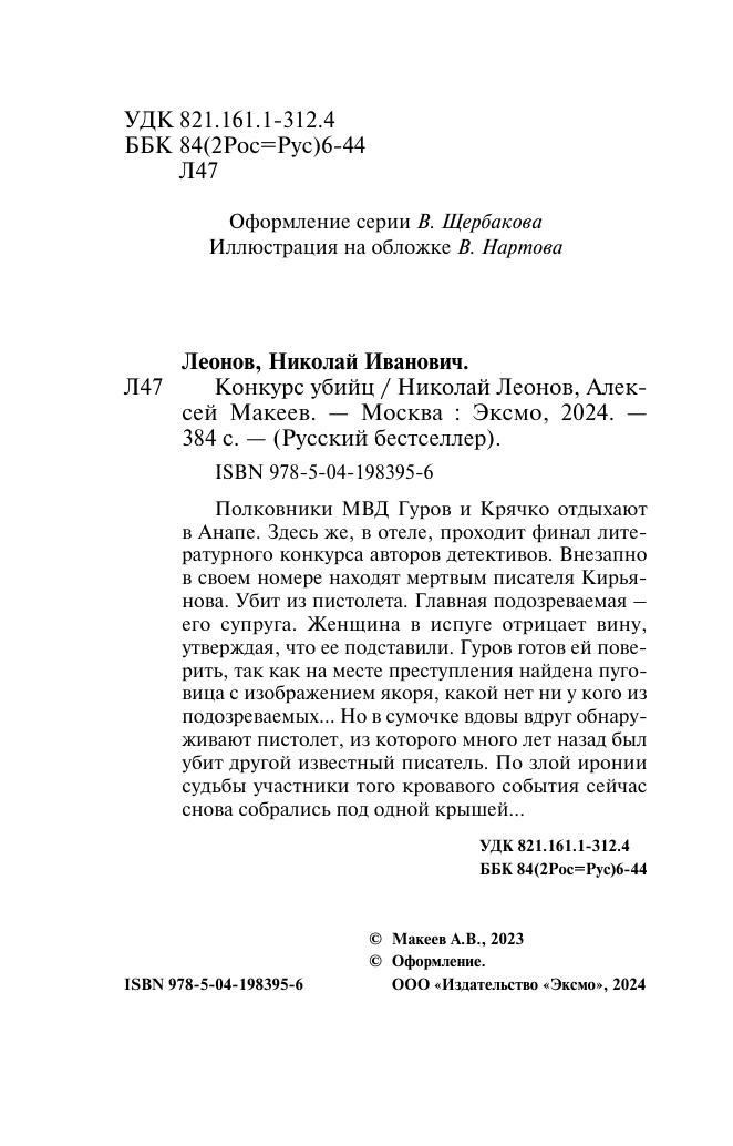 Книга: Конкурс убийц (Леонов Николай Иванович, Макеев Алексей Викторович); ООО "Издательство "Эксмо", 2024