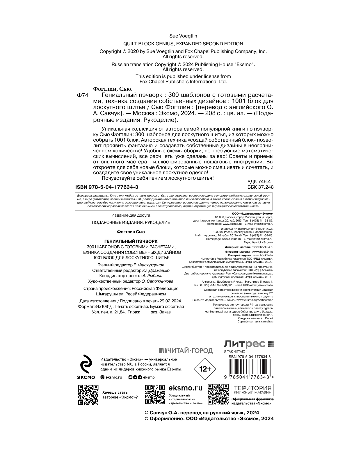 ГЕНИАЛЬНЫЙ ПЭЧВОРК. 300 шаблонов с готовыми расчетами техника создания собственных дизайнов. 1001 блок для лоскутного шитья (Фогтлин Сью); ООО "Издательство "Эксмо", 2024