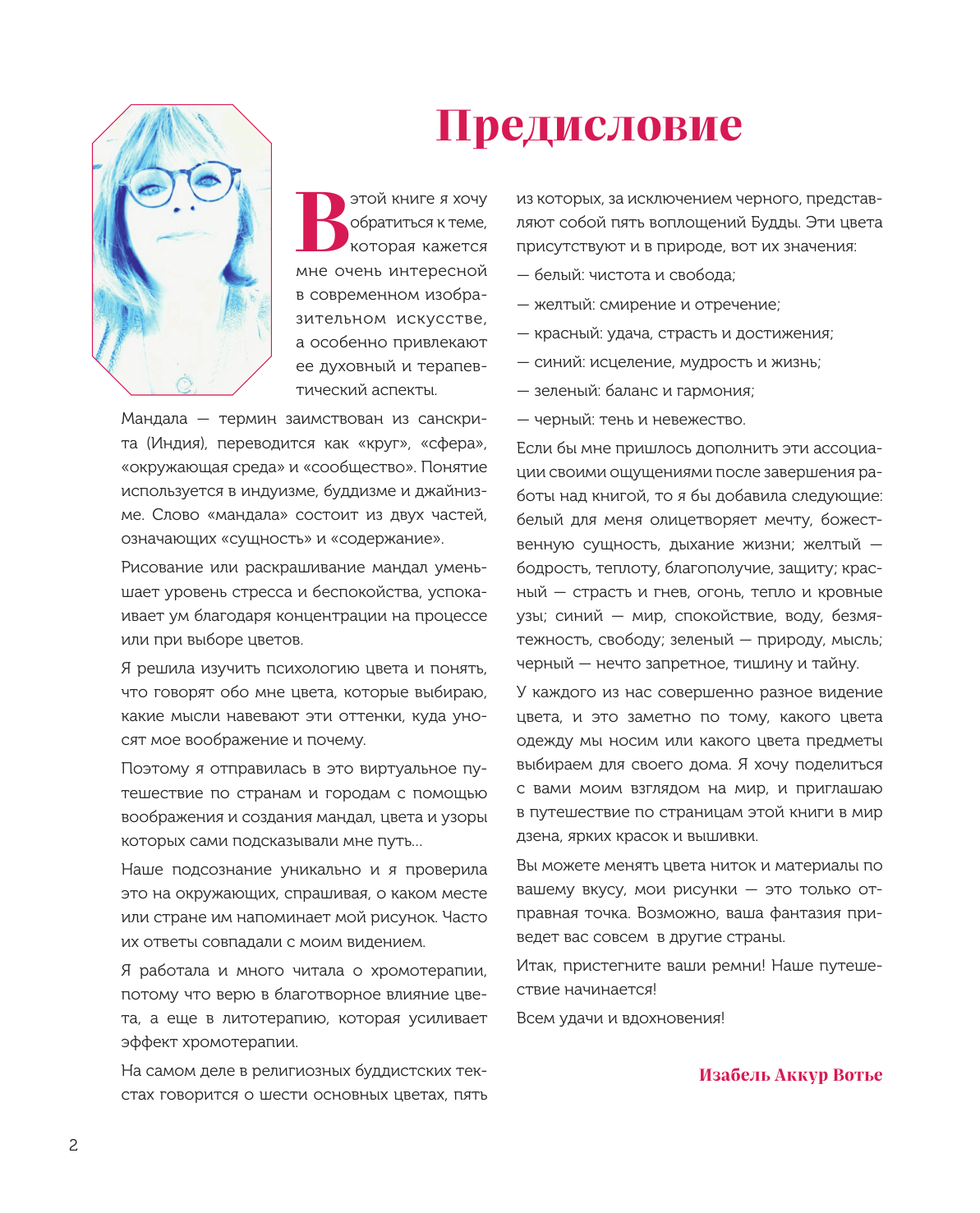Новинка от известной французской вышивальщицы, дизайнера и автора более 20 книг - Изабель Аккур-Вотье! Это не просто руководство, а ваш проводник в увлекательном путешествии по миру мандал, созданных для достижения гармонии и преодоления стресса. Вас ждут 20 невероятных авторских дизайнов, снабженных цветными схемами и цветовыми картами. Каждый из представленных в книге проектов представляет собой уникальную вышивку-ассоциацию с тем или иным причудливым уголком света. Многообразие цветов, форм и размеров мандал позволит вам создать неповторимые вышивки, которые украсят ваш интерьер и добавят в жизнь ярких красок.