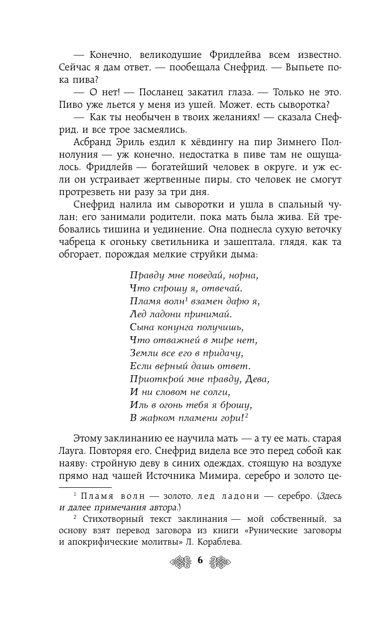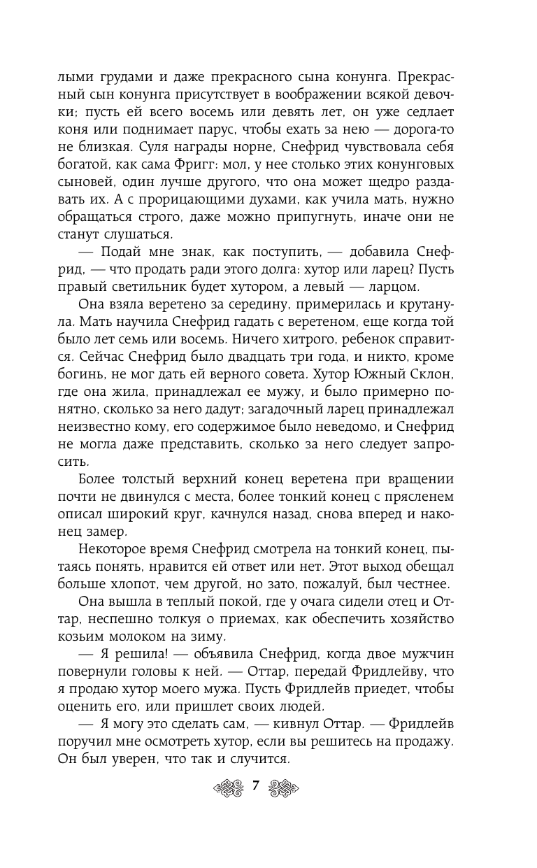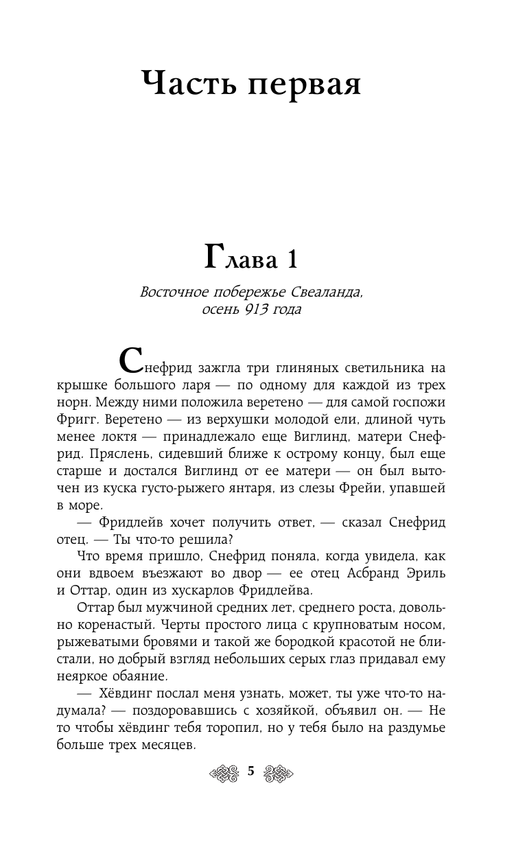 Четыре лета назад Ульвар не вернулся из торговой поездки и пропал. Его молодой жене, Снефрид, досаждают люди, которым Ульвар остался должен деньги, а еще – опасные хозяева оставленного им загадочного запертого ларца. Одолеваемая бедами со всех сторон, Снефрид решается на неслыханное дело – отправиться за море, в Гарды, разыскивать мужа. И чтобы это путешествие стало возможным, она соглашается на то, от чего давно уклонялась – принять жезл вёльвы от своей тетки, колдуньи Хравнхильд, а с ним и обязанности, опасные сами по себе. Под именем своей тетки она пускается в путь, и ее единственный защитник не знает, что под шаманской маской опытной колдуньи скрывается ее молодая наследница…