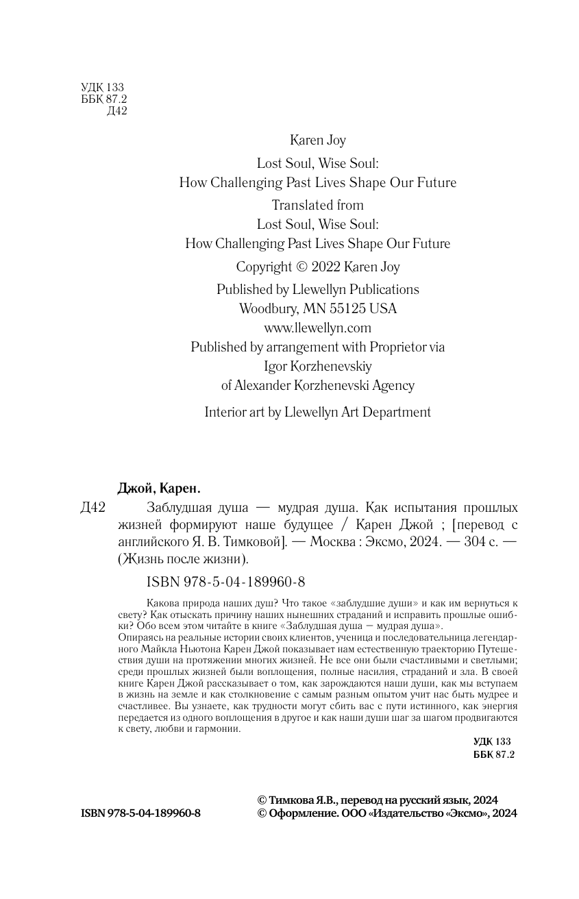 Заблудшая душа - мудрая душа. Как испытания прошлых жизней формируют наше будущее (Карен Джой); Эксмо, 2024