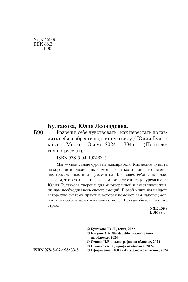 Разреши себе чувствовать. Как перестать подавлять себя и обрести подлинную силу (Булгакова Юлия Леонидовна); ООО "Издательство "Эксмо", 2024