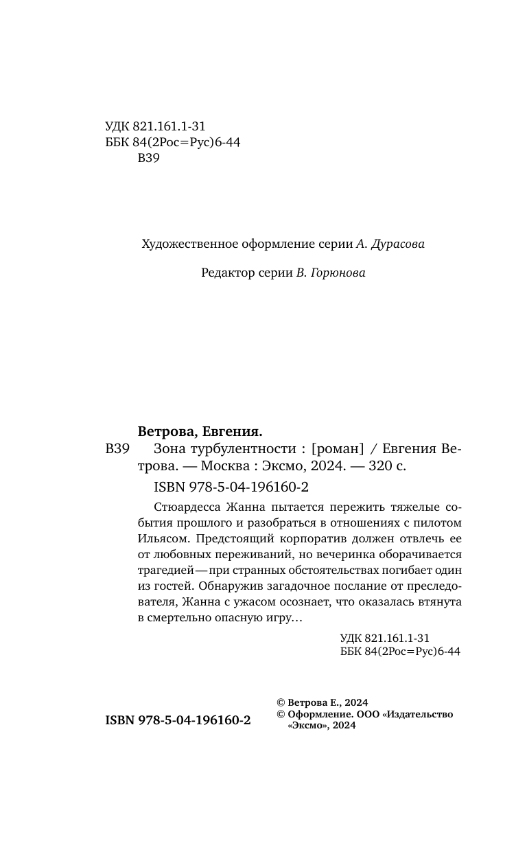 Книга: Зона турбулентности (Евгения Ветрова); Эксмо, Редакция 1, 2024