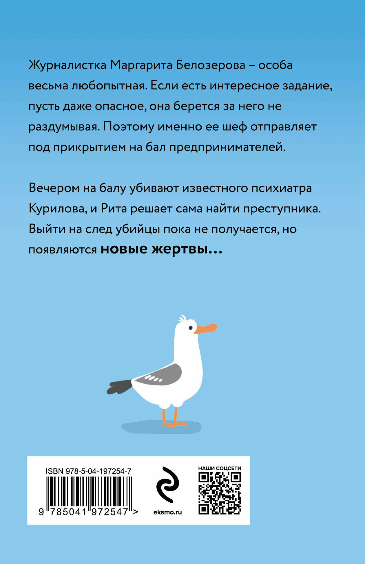 Журналистка Маргарита Белозерова – особа весь любопытная или, как ее называет следователь Илья Кириллович, она – особа особо любопытная. А все потому, что после секретного задания проникнуть на бал предпринимателей, где внезапно случилось убийство, она решила сама найти преступника и начала находить трупы быстрее полицейских. Сначала она обнаружила тело психиатра Курилова, затем его мертвую жену Марию, а после из номера Риты пропала ее подруга Аня…