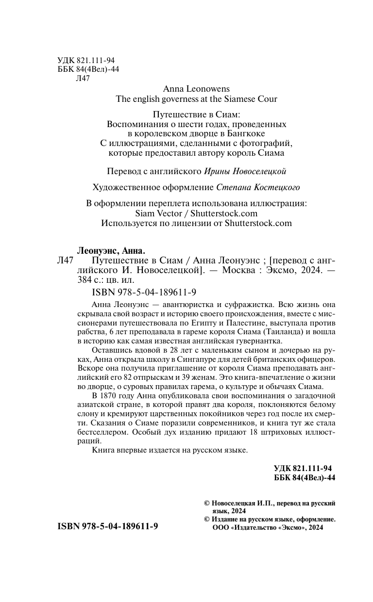 Книга: Путешествие в Сиам (Анна Леонуэнс); Эксмо, Редакция 1, 2025
