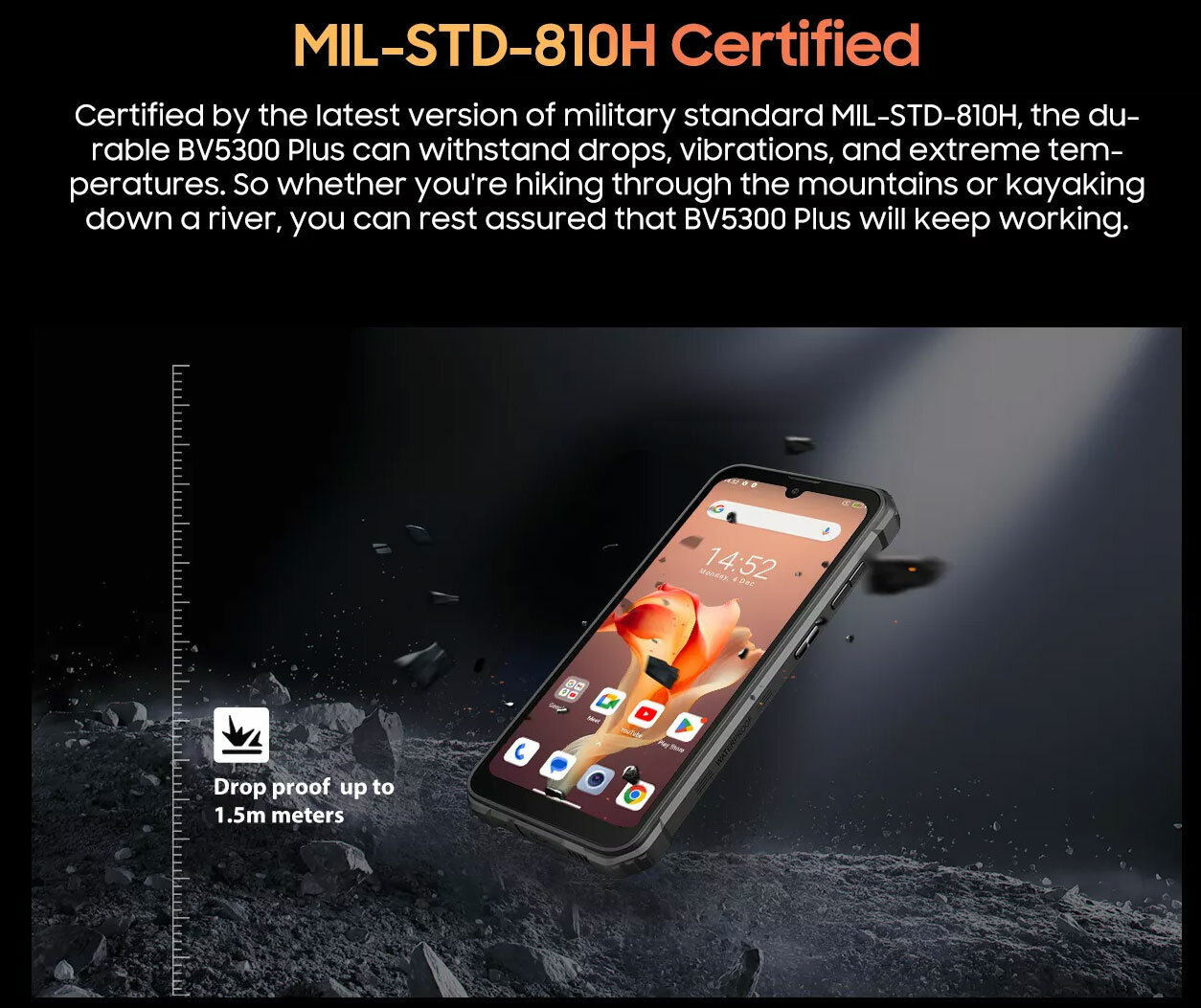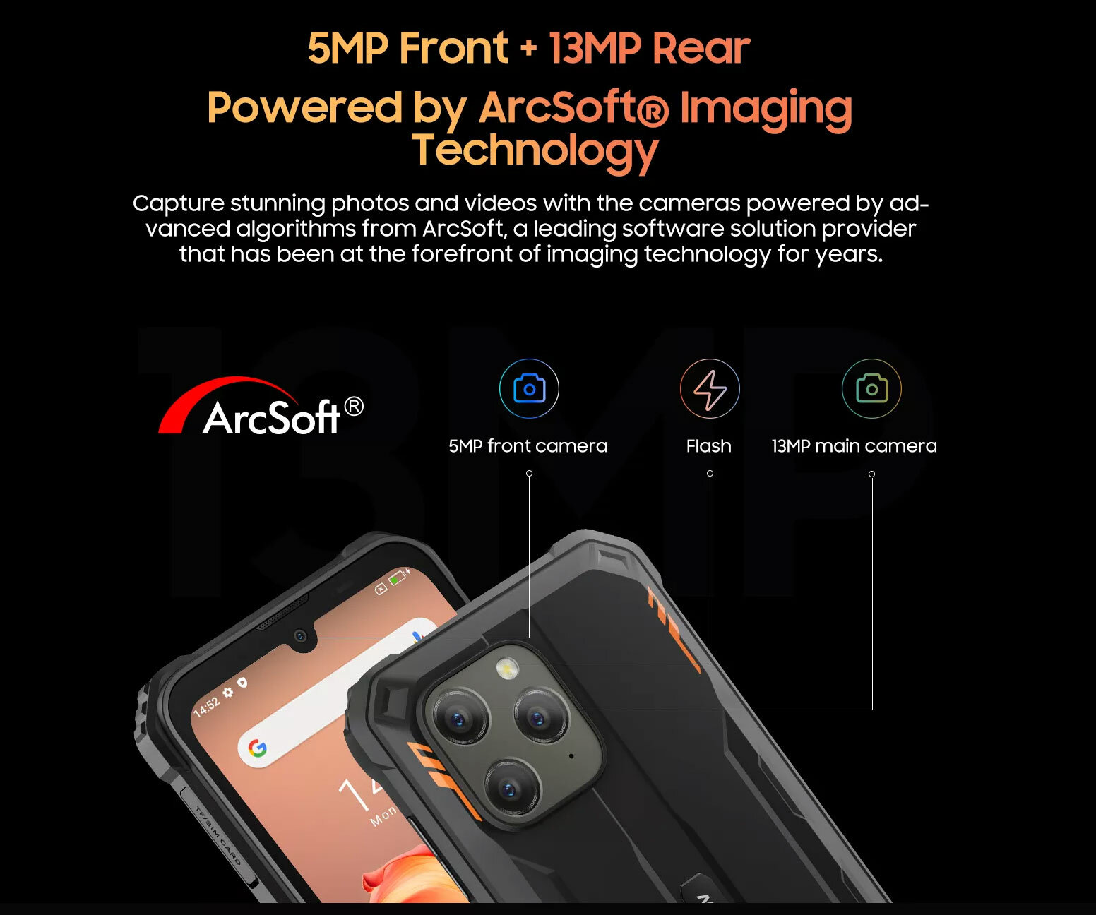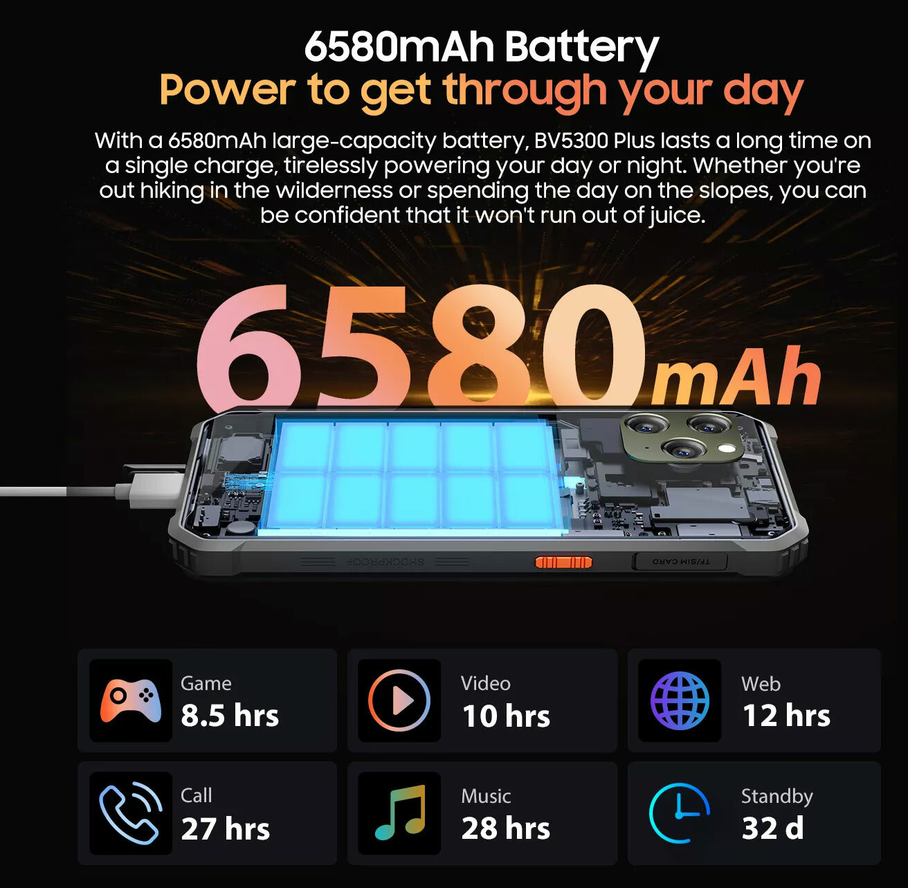 Blackview BV5300 Plus - защищенный смартфон, который использует алгоритмы камеры ArcSoft, включая Panorama, Beauty, HDR и Portrait, для 8-мегапиксельной передней и 13-мегапиксельной основной камер. Blackview BV5300 Plus оснащен 6,1-дюймовым дисплеем HD+ с режимом в перчатках. Работая на версии Doke OS 4.0 на базе Android 13, восьмиядерном процессоре и до 16 ГБ ОЗУ с аккумулятором емкостью 6580 мАч, BV5300 Pro готов к любым рабочим нагрузкам.