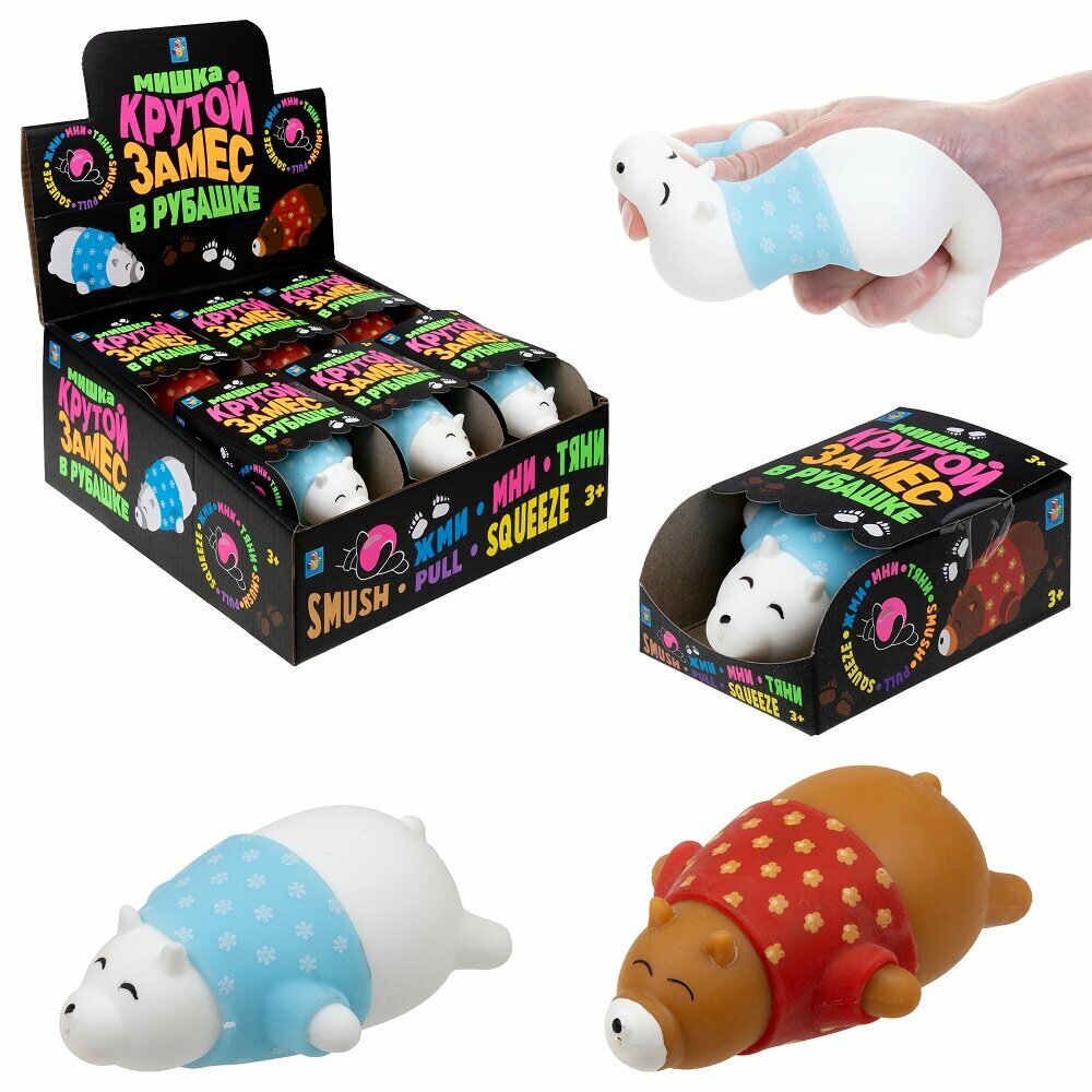 Детская игрушка-жмяка "Крутой замес" от бренда 1TOY представлена в форме милого мишки в рубашке в ассортименте в двух цветах: белый и коричневый. Мишку можно мять, тянуть и сжимать, таким образом игрушка будет развивать мелкую моторику ребенка, а также она обладает антистресс-эффектом!