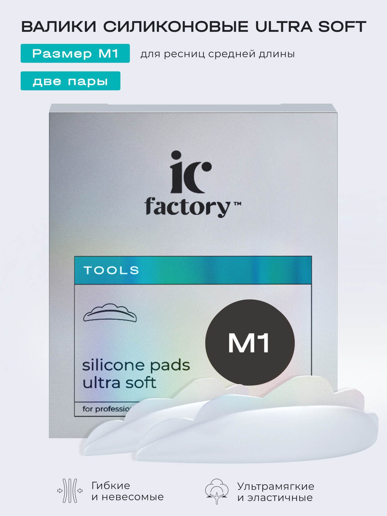 | Состав набора | Валики силиконовые Ultra Soft размер "M1" IC FACTORY — 2 пары |