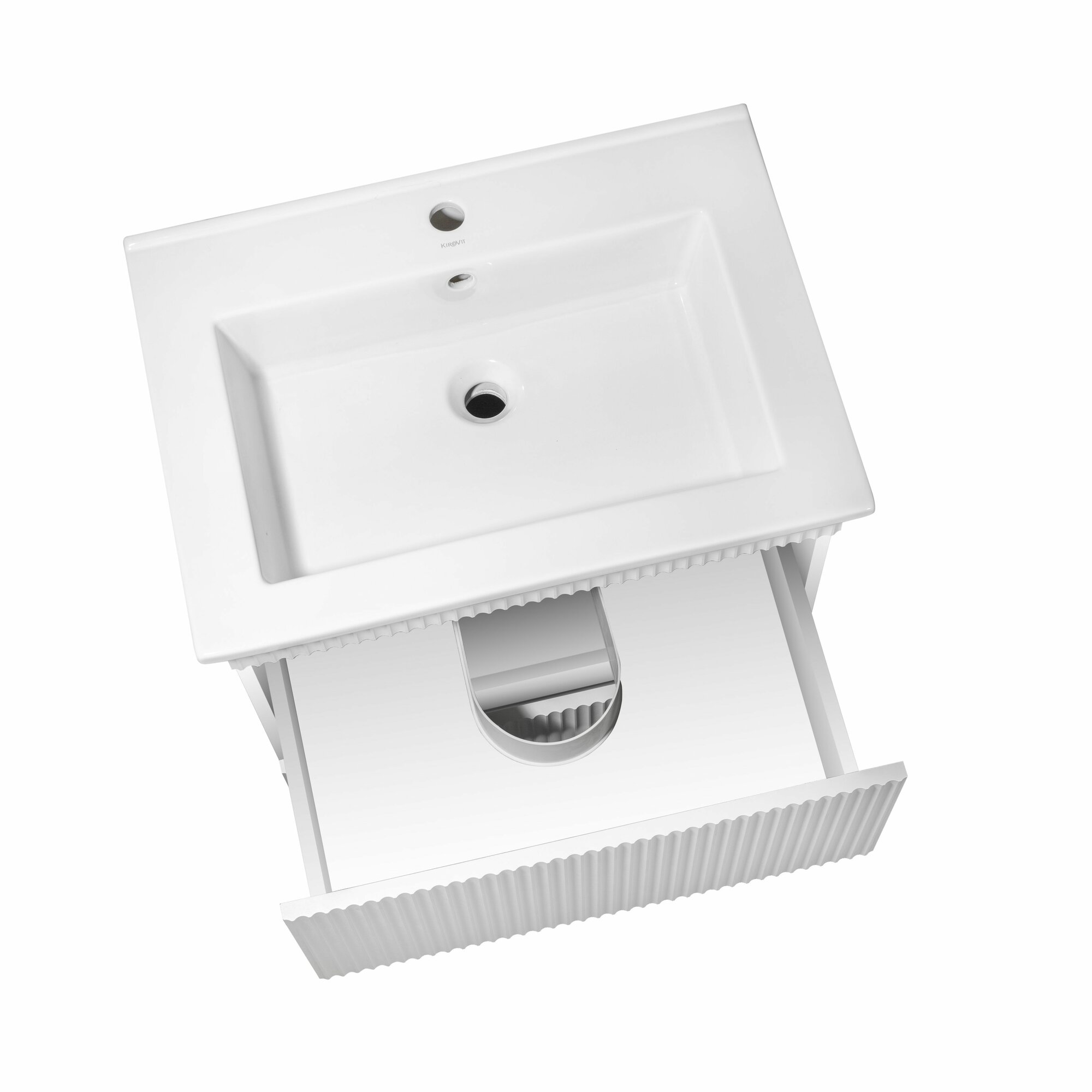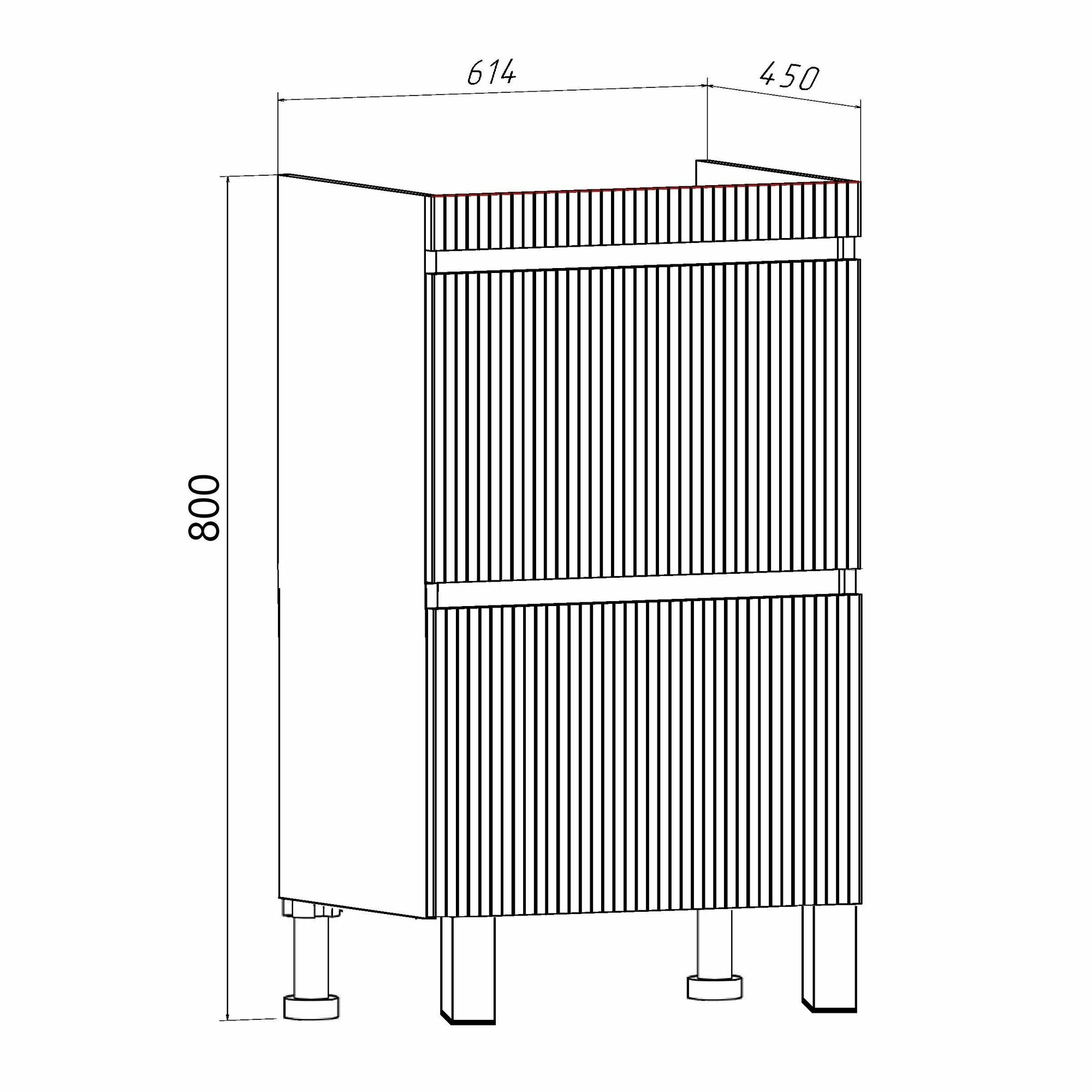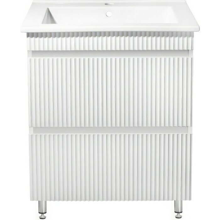 Тумба под раковину в ванную RUNO модена (напольная) – это изысканность и утончённая роскошь в интерьере. Волнистые рифленые фасады визуально «оживляют» и «приводят в движение» всю обстановку комнаты, сохраняя при этом умиротворение и покой, превосходно сочетаются с классическим белым цветом корпуса. Цвет фасада также классический – белый глянец, идеально впишется в любой интерьер ванной комнаты. Тумба для ванной оснащена двумя выдвижными ящиками на шариковых направляющих, к тумбе для ванной подходит накладная керамическая раковина «Оскар» (660х470 мм). Раковина глубиной 19 см. Мебель для ванной RUNO - красота и практичность в мелочах, тумба под раковину для ванной комнаты Модена – лучший выбор для Вашей ванной комнаты!