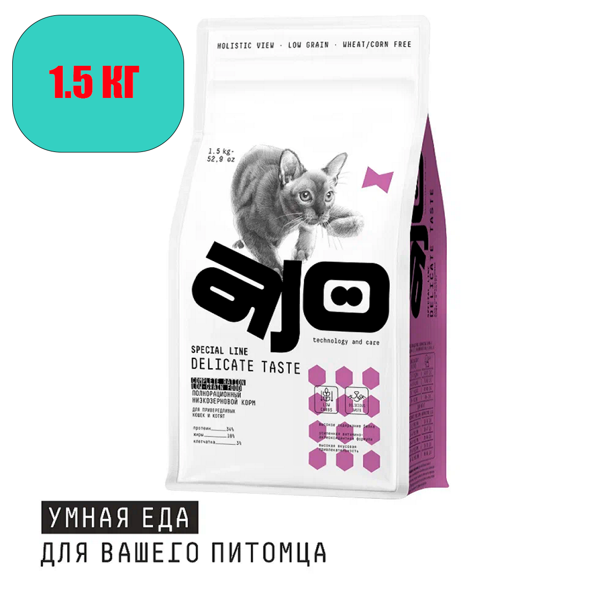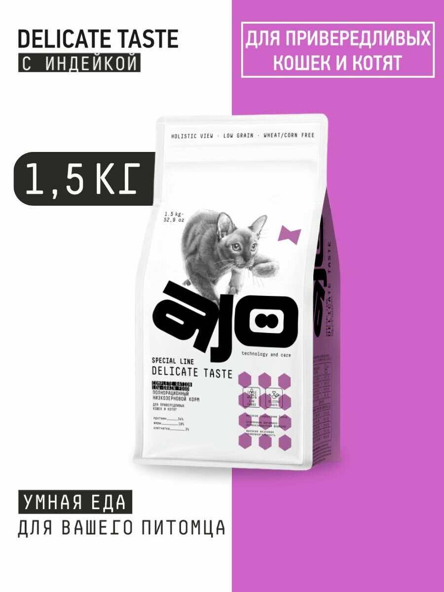 AJO Delicate Taste полнорационный корм для привередливых кошек и котят (Индейка 15 кг.)