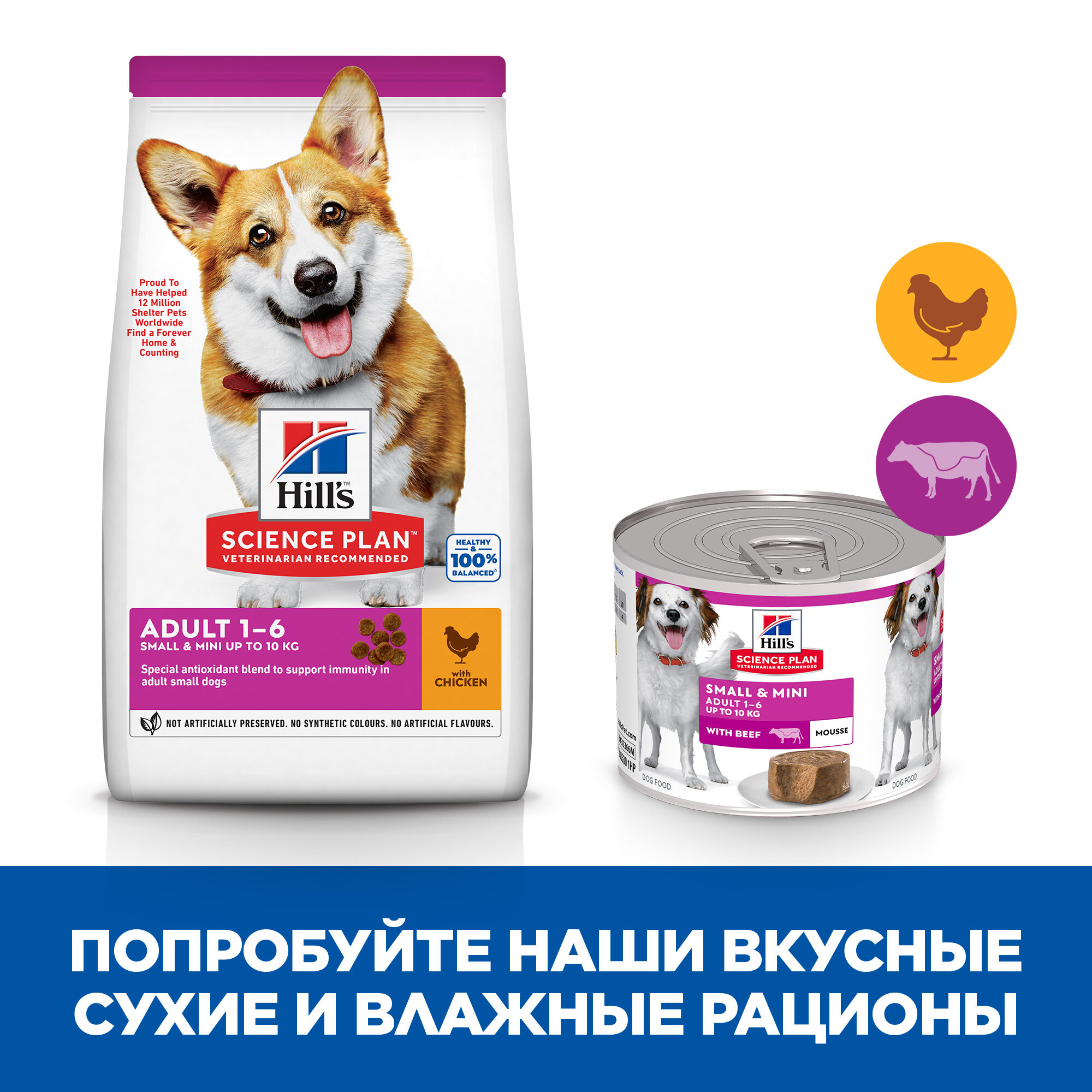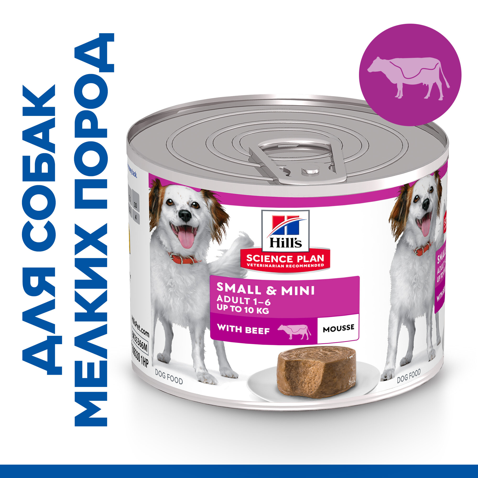 Влажный корм Hill's Science Plan Small&Mini Мусс с говядиной - полноценный рацион с мягкой текстурой для взрослых собак мелких пород в возрасте от 1 до 6 лет. Этот рацион разработан с учетом уникальных потребностей собак мелких пород в период расцвета их жизни. Способствует поддержанию иммунной системы и здорового пищеварения. Содержит оптимальное сочетание белков, жиров и углеводов, обеспечивая вашего питомца необходимой энергией. Мягкая муссовая текстура, обеспечивает вашего питомца необходимой энергией благодаря правильному сочетанию белков, жиров и углеводов; Поддерживает иммунную систему благодаря мощному комплексу антиоксидантов; Поддерживает здоровое пищеварение благодаря легко усваиваемым ингредиентам.Назначение: Взрослая собака мелкой и мини породы в возрасте от 1 до 6 летНе рекомендуется: Щенкам, беременным или кормящим собакам. Собак во время беременности или кормления следует переводить на Hill's SCIENCE PLAN Puppy Loaf.