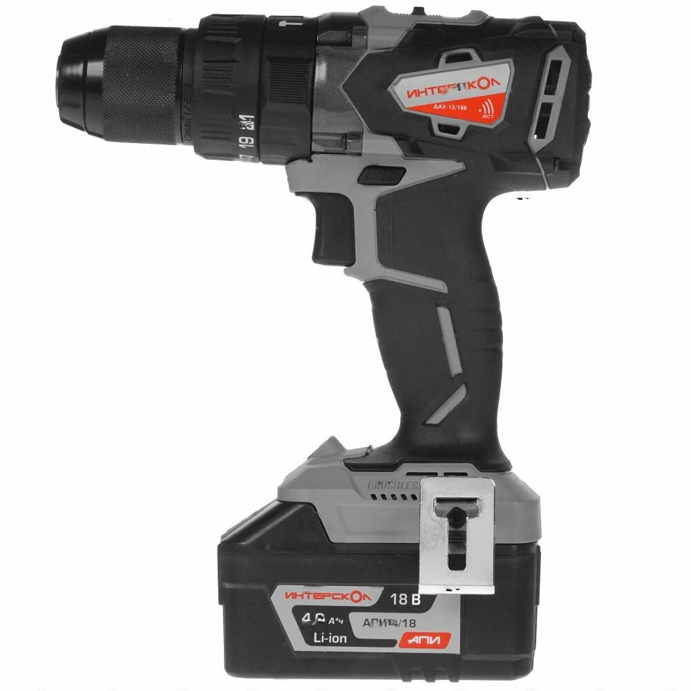 Бесщеточная аккумуляторная ударная дрель-шуруповерт ИНТЕРСКОЛ ДАУ-13/18В 50 50 Нм 1600 об/мин 27000 уд/мин с 2 АКБ 2 Ач и ЗУ в кейсе 802.2.2.70