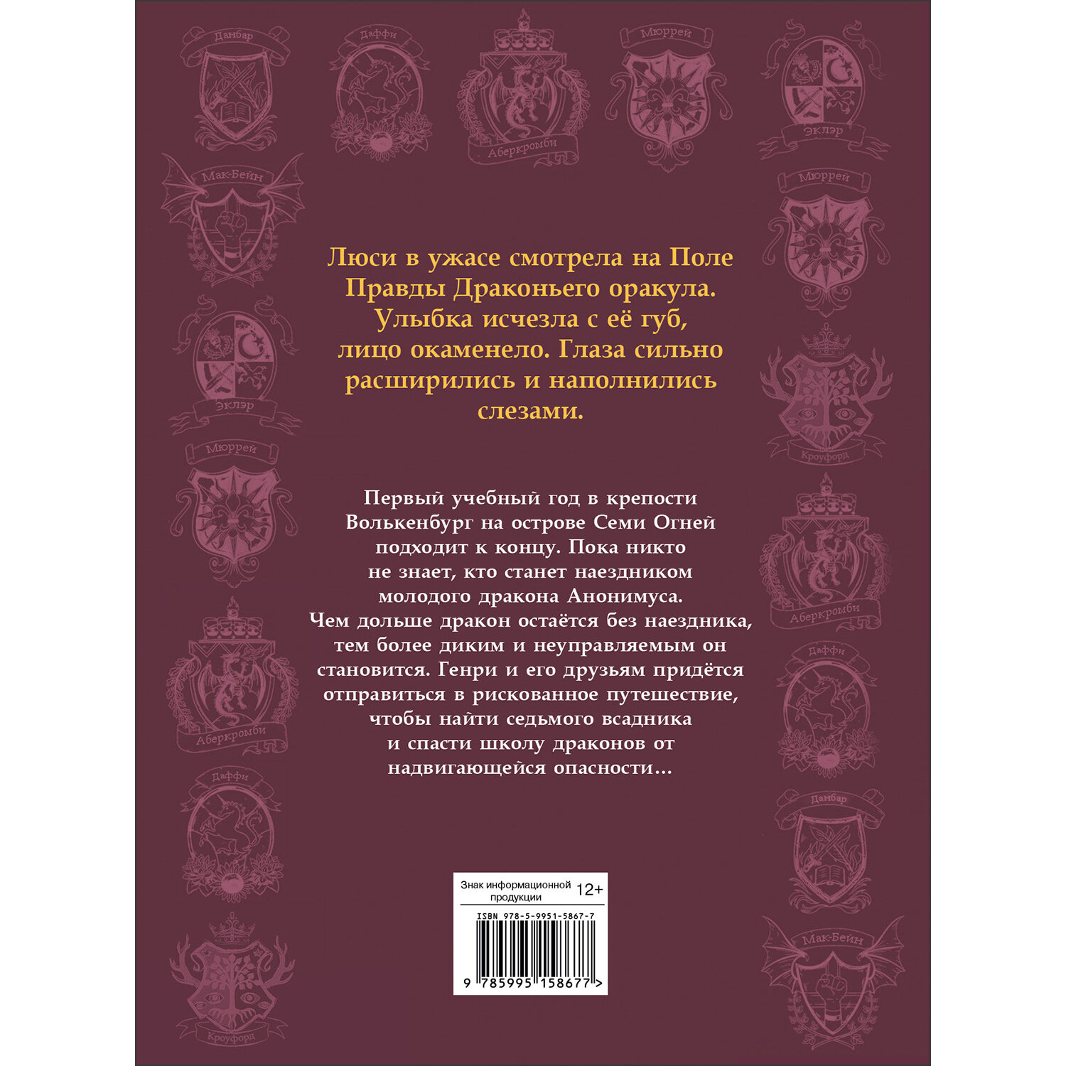 "Люси в ужасе смотрела на поле Правды Драконьего оракула. Улыбка исчезла с ее губ, лицо окаменело. Глаза сильно расширились и наполнились слезами. " Первый учебный год в крепости Волькенбург на острове Семи Огней подходит к концу. Пока никто не знает, кто станет наездником молодого дракона Анонимуса. Чем дольше дракон остается без наездника, тем более диким и неуправляемым он становится. Генри и его друзьям придется отправиться в рискованное путешествие, чтобы найти седьмого всадника и спасти Школу драконов от надвигающейся опасности. Художник Паскаль Нельднер Перевод с немецкого языка А. Шершун Серия книг немецкой писательницы Эмили Скай о приключениях Генри Мак-Бейна и его друзей для детей среднего и старшего школьного возраста