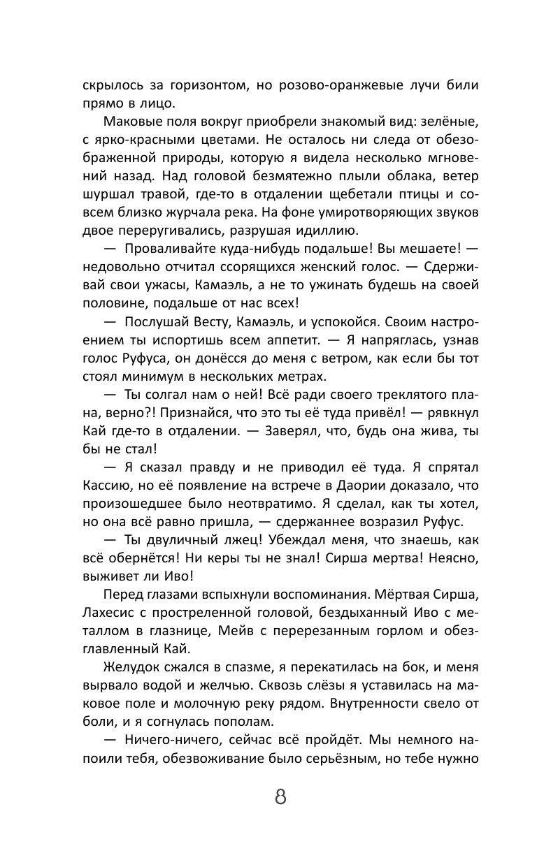 За один вечер Кассия лишилась дома, выбора и прошлой жизни. Теперь ее место в Палагеде. И пока глава Дома Раздора просит помощи, другие шесть архонтов видят в ней досадную помеху, которая в состоянии разрушить их планы на обретение желанного могущества. Одновременно с этим Микель оказывается втянут в гущу политических событий, где пытается склонить царей к перемирию между мирами и разобраться, насколько реально пророчество сивилл о гибели всей Даории от рук Кассии. Вторая часть трилогии "Нити судьбы" - городского фэнтези Лии Арден, автора популярнейших романов цикла "Смерть и Тень", рассказывающего о Марах и Мороках, и полюбившейся многим одиночной истории "Невеста Ноября". Суммарные тиражи всех книг Лии Арден превысили миллион экземпляров. Истории цикла "Нити судьбы" построены на авторской мифологии, отсылающей к древнегреческому пантеону богов первого поколения. Яркий и драматичный финал первой части послужил завязкой для дальнейшего развития событий романа, впереди главную героиню ждут новые испытания. В книге мастерски сочетаются мотивы греческих мифов и технологичность городских пейзажей, альтернативная современность и тайны прошлого, поднимаются вопросы дружбы и предательства, чести и отваги и, конечно же, любви. Свобода истории, большая решимость в героях, больше дерзости в тексте. Пересечение миров и чудовища, выползающие из них. Яркие внутренние иллюстрации от художницы AceDia.