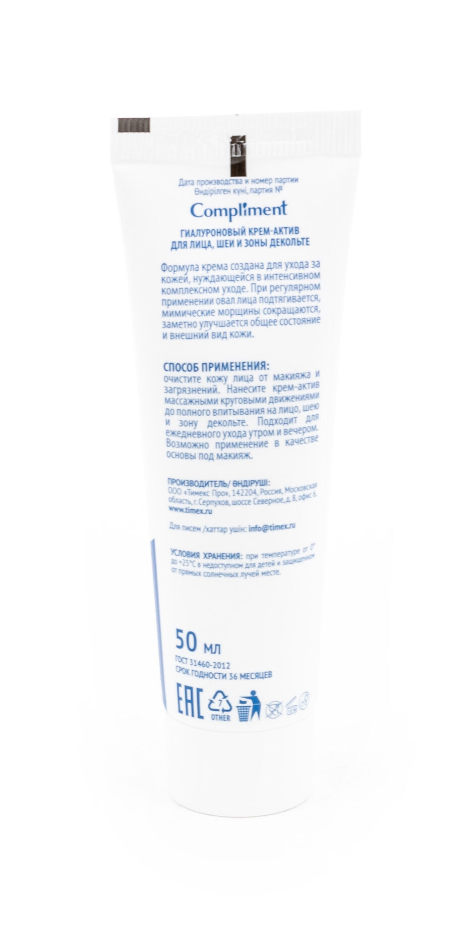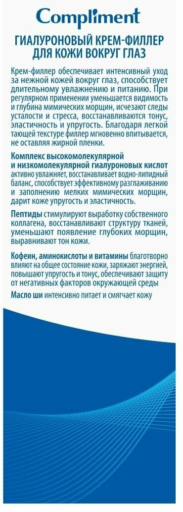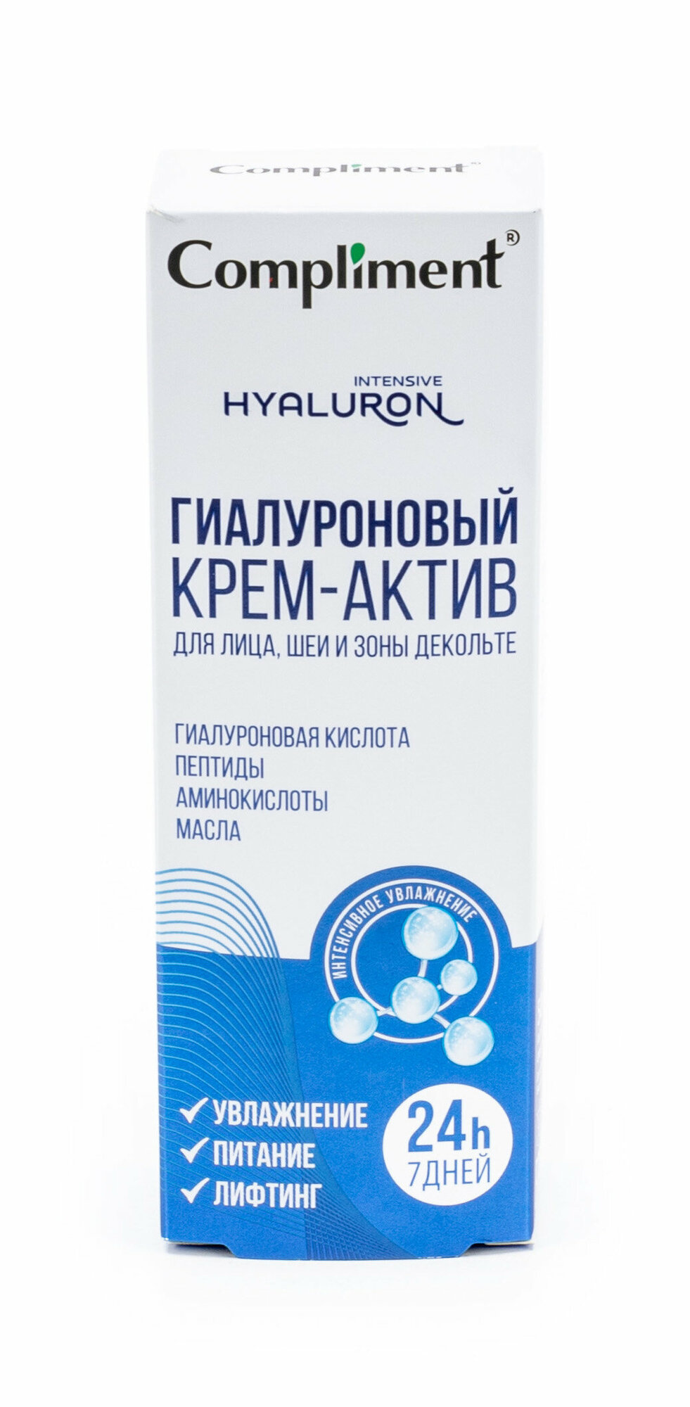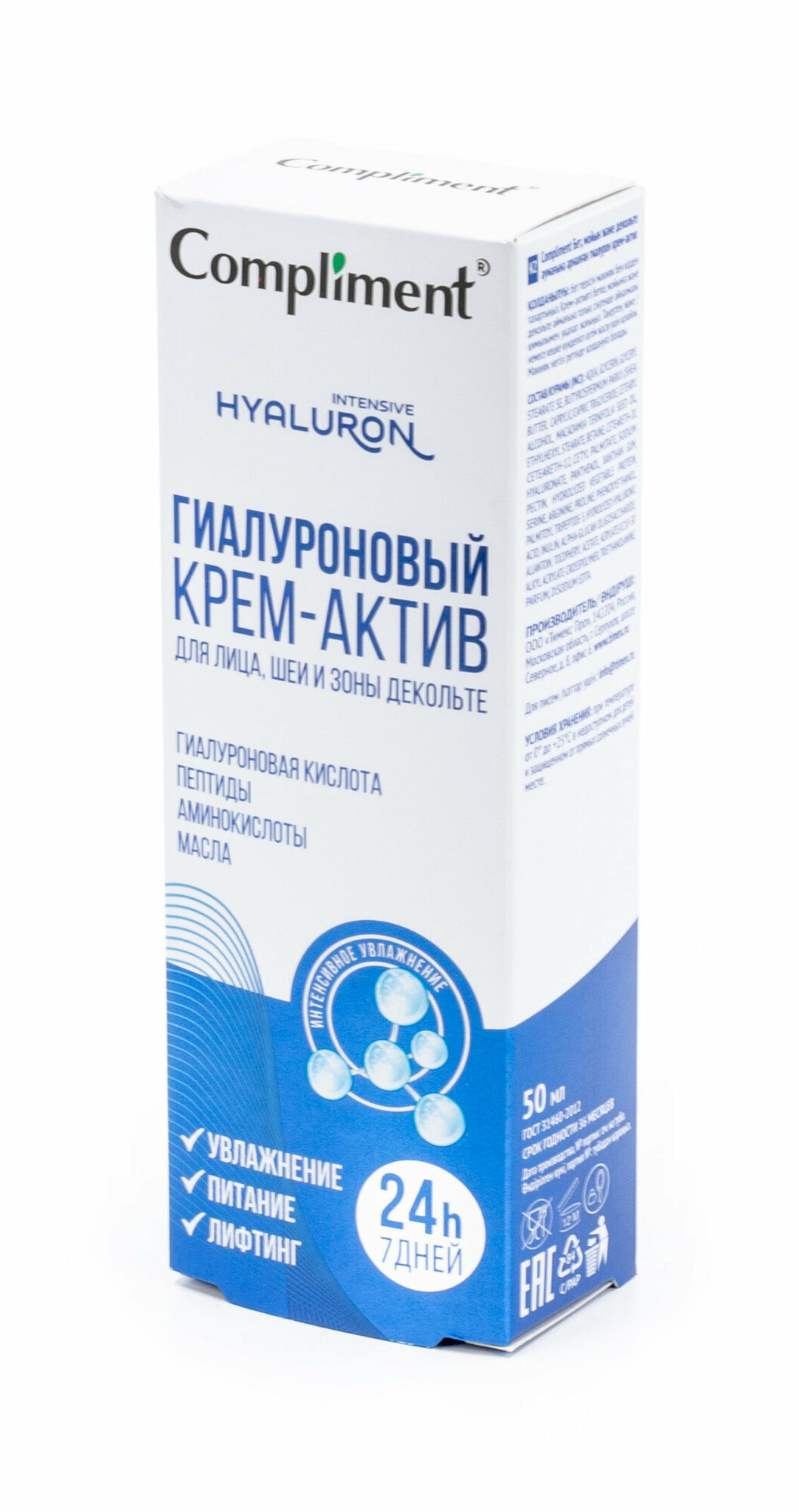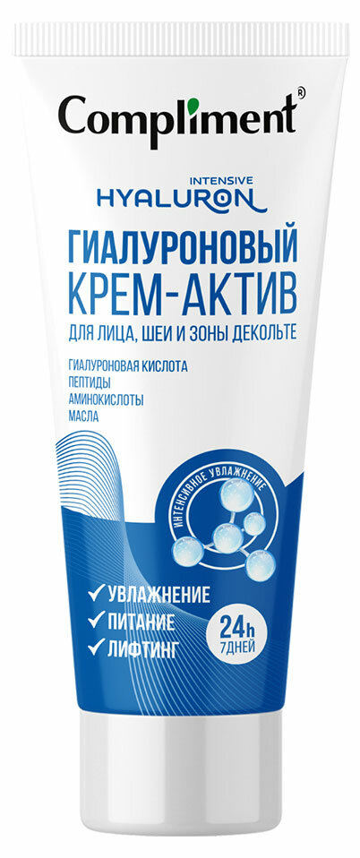 | Состав набора | Крем-актив для лица шеи и зоны декольте Compliment Гиалуроновый питающий 50 мл |