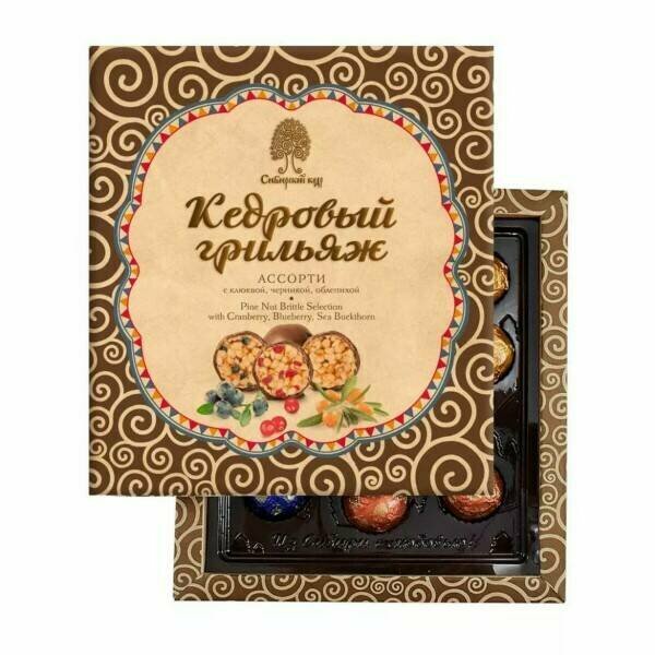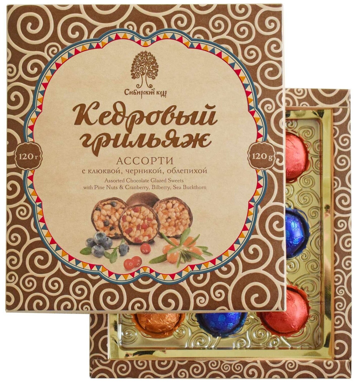 Мягкий грильяж с цельным кедровым орехом, клюквой, черникой, облепихой. Оригинальные мягкие конфеты с цельным ядром кедрового ореха. 100% натуральный шоколад, Алтайский ароматный мед, Сибирские ягоды: лесная черника, таежная клюква и полезная облепиха, Не содержит консервантов, искусственных ароматизаторов и красителей.