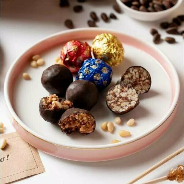 | Состав | Ядро кедрового ореха цельное, шоколад темный (какао-масса,сахар,какао-масло, лецитин соевый (эмульгатор), ароматизатор натуральный ваниль), ядро кешью, мёд натуральный, пастила клюквенная (пюре яблочное,ягоды клюквы), пастила облепиховая (пюре яблочное, ягоды облепихи), пастила черничная (пюре яблочное, ягоды черники) |