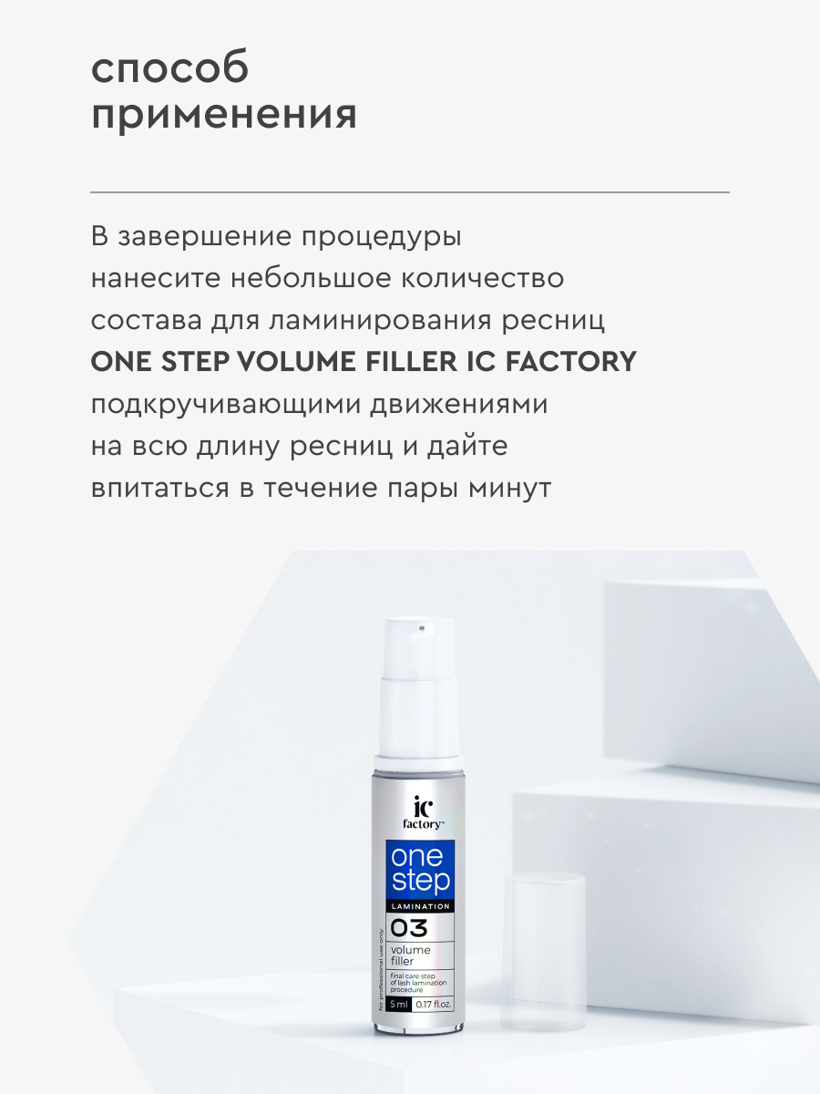 | Полное наименование | Состав для ламинирования ресниц ONE STEP VOLUME FILLER IC FACTORY, 5 мл |