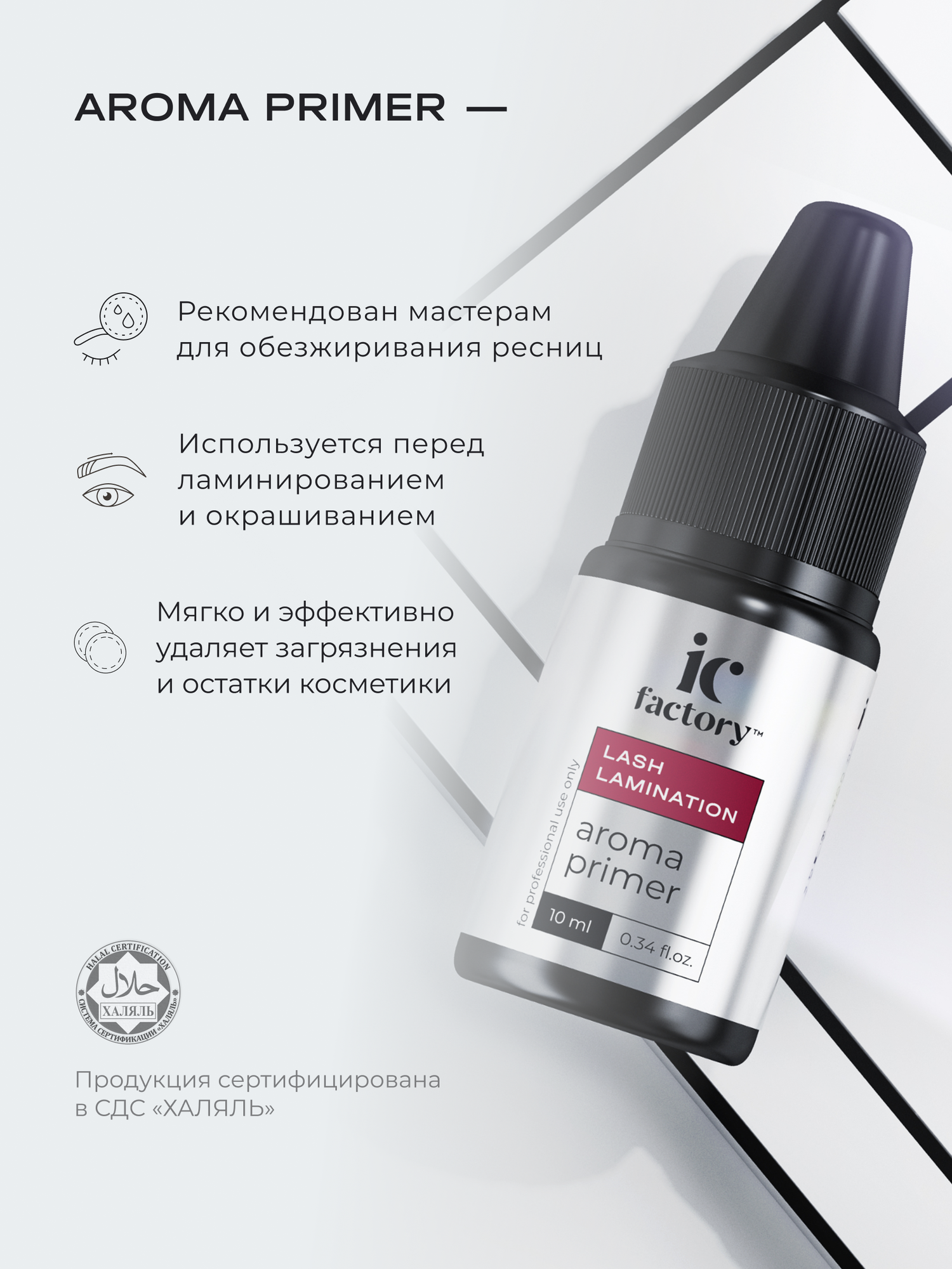 | Полное наименование | Средство для обезжиривания ресниц AROMA PRIMER IC FACTORY, 10 мл |