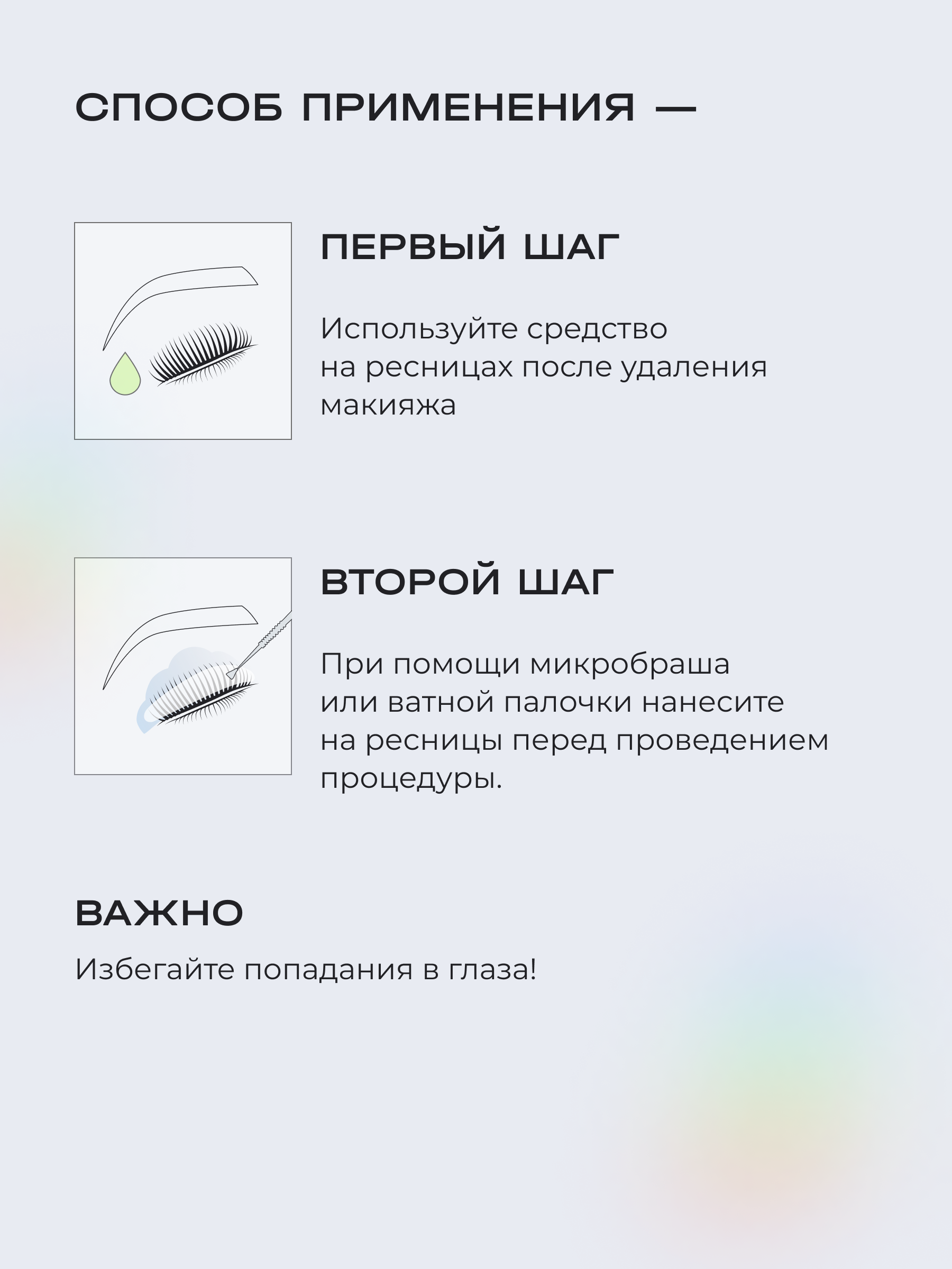 | Назначение | для биозавивки; для долговременной укладки бровей; для ламинирования; для окрашивания; для протеиновой реконструкции |