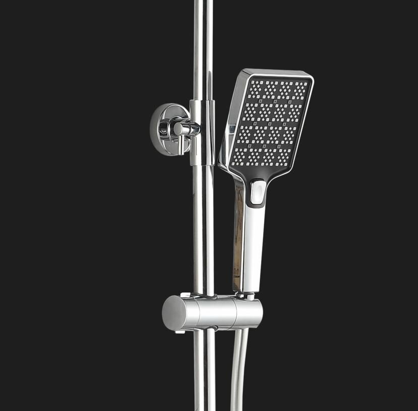 Душевая система ESKO – стильное и функциональное решение для вашей ванной комнаты. Изготовленная из латуни, она обеспечивает надежность и долгий срок службы. Смеситель позволяет регулировать температуру воды, а удобный дизайн обеспечивает комфорт в использовании. Подходит для любого интерьера благодаря элегантному исполнению и высокому качеству материалов.