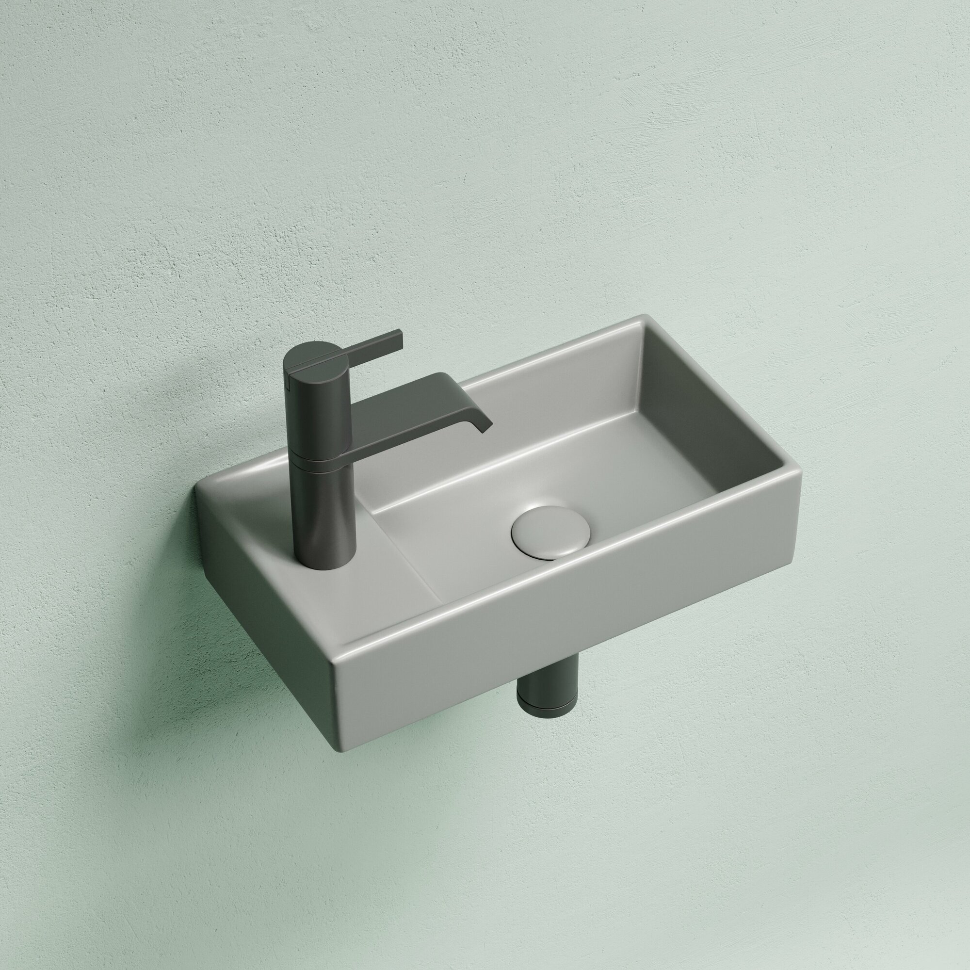 Умывальник подвесной прямоугольный (чаша справа, отверстие под смеситель слева) цвет антрацит матовый Element 407х217х100. Особенности раковины: дизайнерская антрацит матовый. Страна производства: Италия. Дизайн: современный. Гарантия: 10 лет.