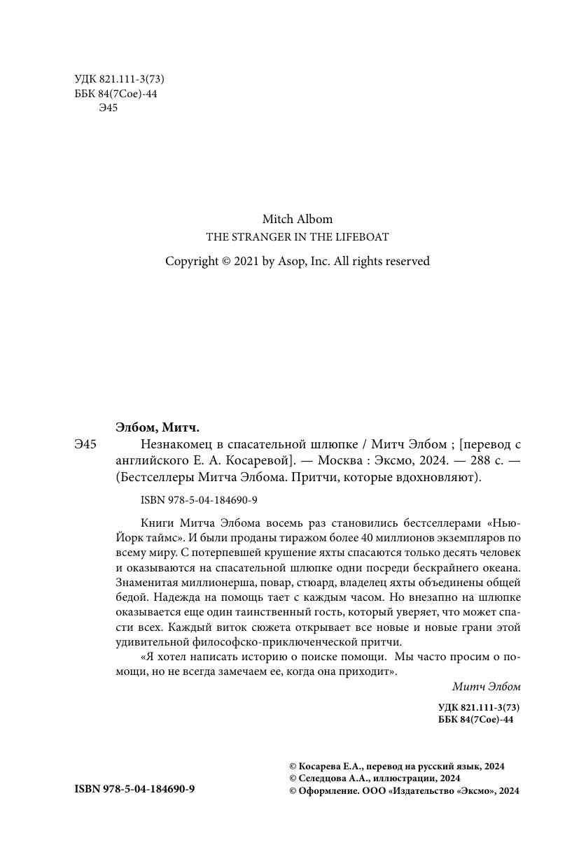 Незнакомец в спасательной шлюпке (Митч Элбом); Эксмо, БОМБОРА, 2024
