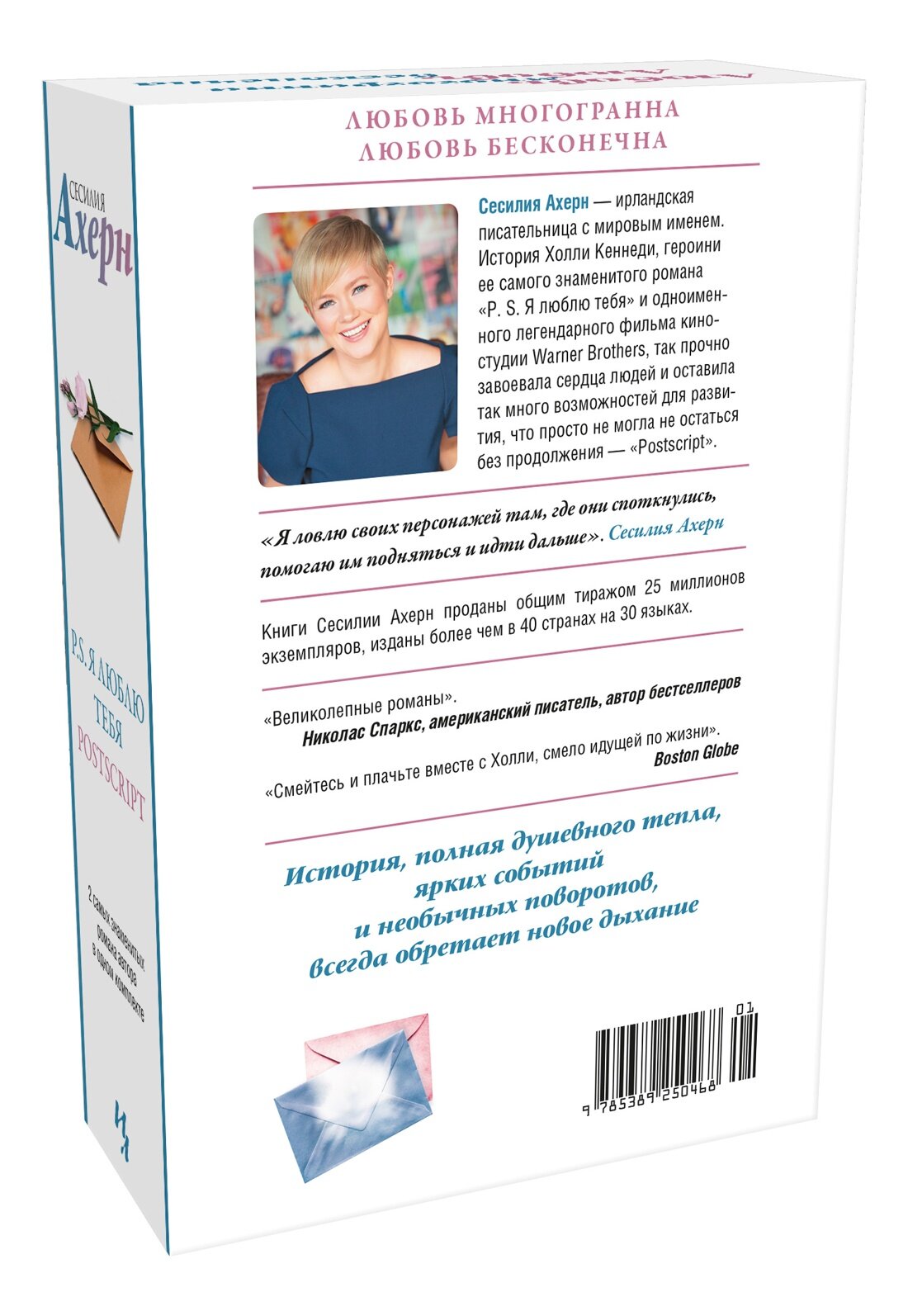 Сначала молодая ирландская писательница Сесилия Ахерн создала роман "P. S. Я люблю тебя", который принес ей мировую славу и был экранизирован с шумным успехом. Изложенная в нем история любви стала легендарной, нашла отклик в сердцах жителей многих стран и сохранила в себе возможности развития, поэтому через 15 лет Сесилия написала трогательное продолжение, "Postscript". Теперь два самых знаменитых романа Сесилии Ахерн собраны вместе в одном комплекте, чтобы подарить вам радость от великолепной прозы, в которой интересные сюжеты воплощены с чувством и теплотой, одна история органично продолжает другую, а полюбившиеся киногерои обретают дополнительные детали своих образов - и навсегда остаются с вами, на вашей книжной полке или в доме ваших близких, которым вы можете сделать такой чудесный подарок!