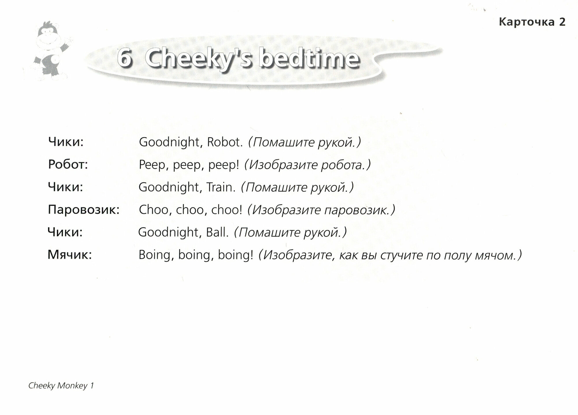 Серия «Английский для дошкольников» входит в программно-методический комплекс дошкольного образования «Мозаичный ПАРК». Cheeky Monkey 1/2/3 – комплекты развивающих материалов для изучения английского языка, адресованные детям дошкольного возраста: уровень 1: средняя группа, 4-5 лет, уровень 2: старшая группа, 5-6 лет, уровень 3: подготовительная к школе группа, 6-7 лет. Материалы комплекта включают увлекательные задания, истории, песни, карточки, стимулирующие познавательную активность дошкольников. В дополнительных развивающих пособиях (Cheeky Monkey 2 Плюс/3 Плюс) к уровням 2 и 3 даются ещё три дополнительных занятия к каждому из шести разделов основного развивающего пособия. Предлагаемая методика является универсальной и может эффективно использоваться на групповых занятиях в детских садах, развивающих центрах для дошкольников, а также на индивидуальных занятиях. Пособие предназначено для чтения взрослыми детям.