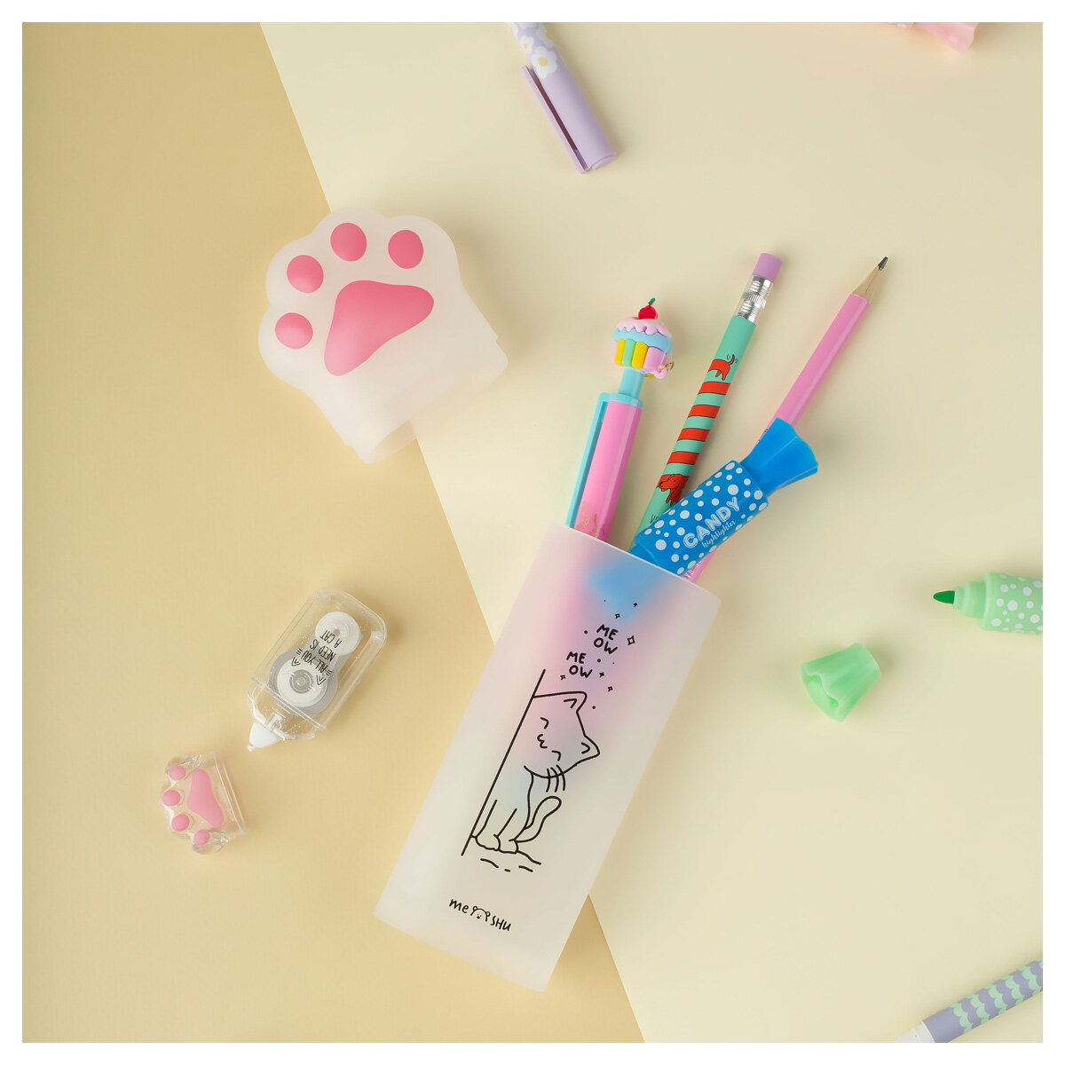 Милый пенал MESHU Paw выполнен в форме кошайчьей лапки. Размер изделия ? 185*65*35 мм, выполнена из пластика. Поставляется без наполнения.