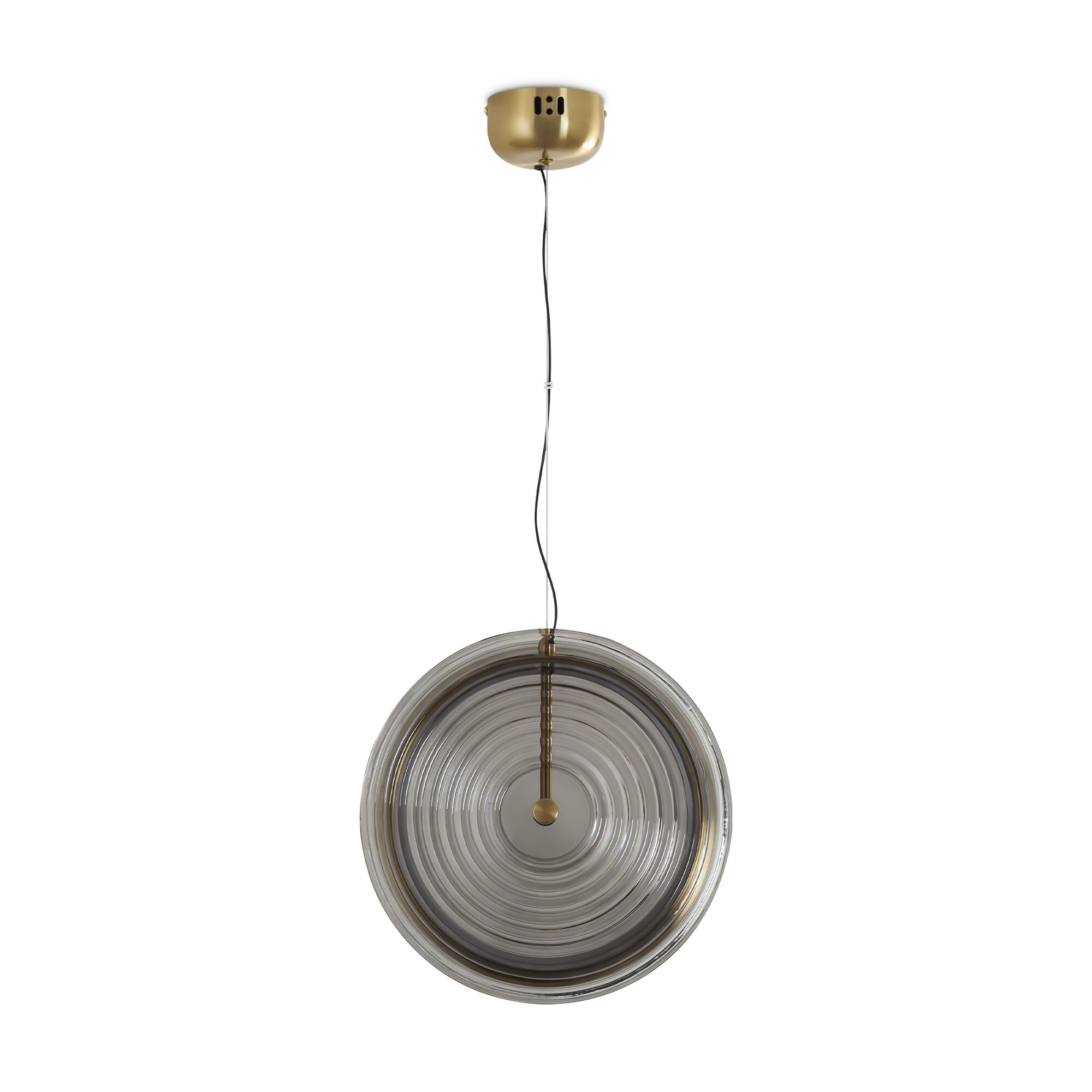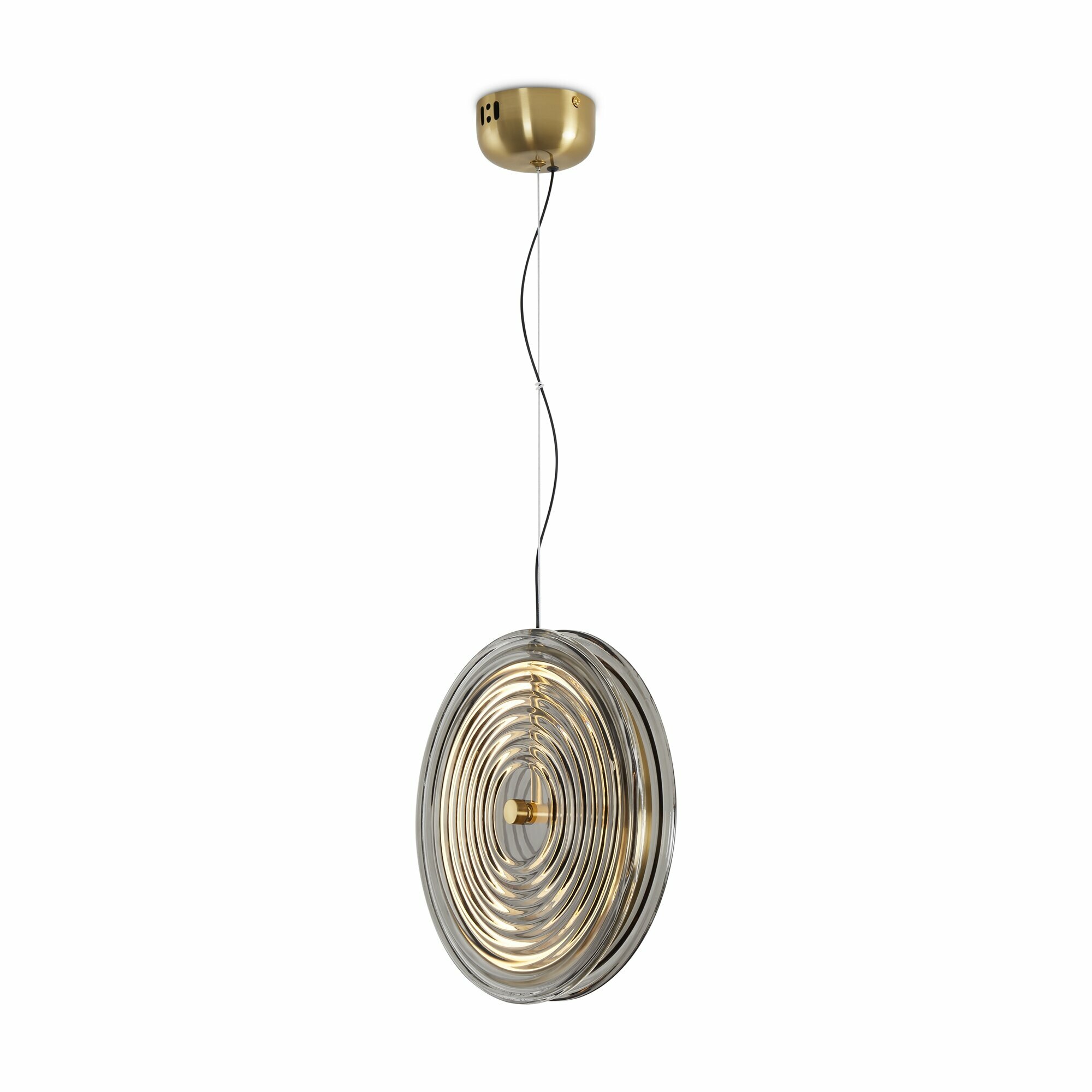 Арматура - металл. Цвет арматуры латунь. Плафоны из стекла в форме леденцов выполнены в четырех цветах: серый, зеленый, прозрачный и желто-оранжевый. Широкий спектр типов светильников: торшеры, настенные бра и подвесы. LED источник света. Цветовая температура 3000К.