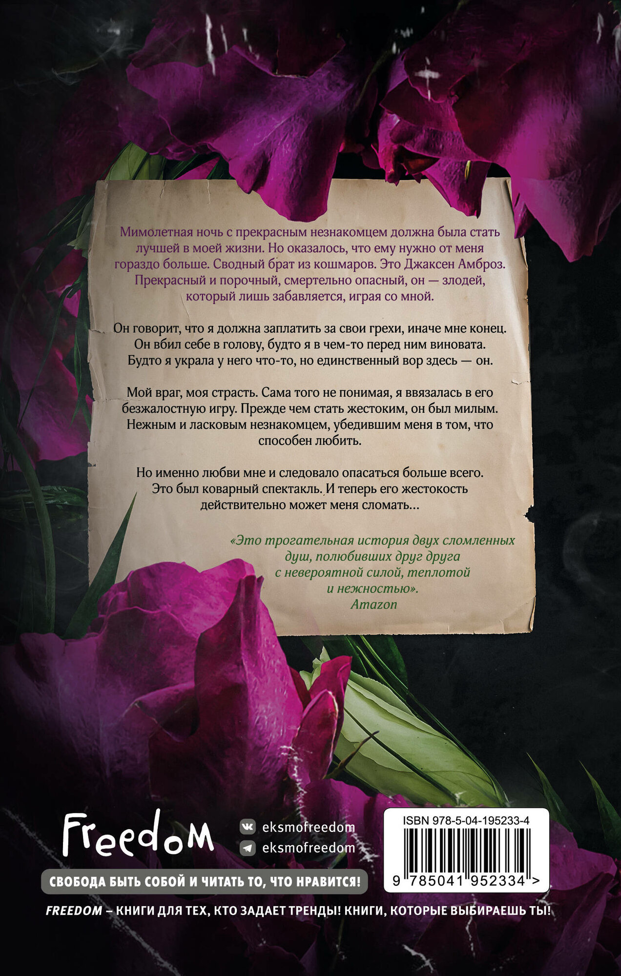 Третья книга чувственной и драматичной серии «Короли кампуса», в основе которой троп «от врагов к возлюбленным»! Сильные истории, где много драмы и страсти! Каждая книга про разных героев, их можно читать отдельно! Придется по душе поклонникам Л. Дж. Шэн, Софи Ларк и Тилли Коул, а также фанатам сериалов «Элита» и «Сплетница»! Мимолетная ночь с прекрасным незнакомцем должна была стать лучшей в моей жизни. Но оказалось, что ему нужно от меня гораздо больше. Сводный брат из кошмаров. Это Джаксен Амброз. Прекрасный и порочный, смертельно опасный, он - злодей, который лишь забавляется, играя со мной. Он говорит, что я должна заплатить за свои грехи, иначе мне конец. Он вбил себе в голову, будто я в чем-то перед ним виновата. Будто я украла у него что-то, но единственный вор здесь он. Мой враг, моя страсть. Сама того не поминая, я ввязалась в его безжалостную игру. Прежде чем стать жестоким, он был милым. Нежным и ласковым незнакомцем, убедившим меня в том, что способен любить. Но именно любви мне и следовало опасаться больше всего. Это был коварный спектакль. И теперь его жестокость действительно может меня сломать. «Это трогательная история двух сломленных душ, полюбивших друг друга с невероятной силой, теплотой и нежностью». - Amazon
