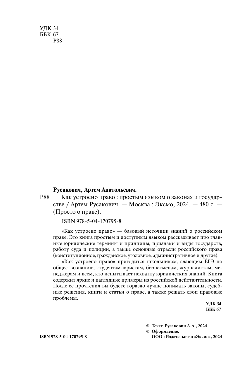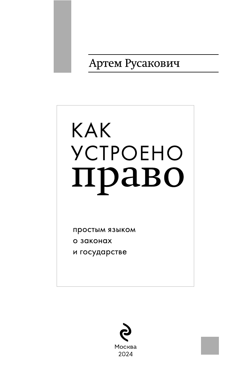 Как устроено право: простым языком о законах и государстве (Русакович Артем Анатольевич); ООО "Издательство "Эксмо", 2024