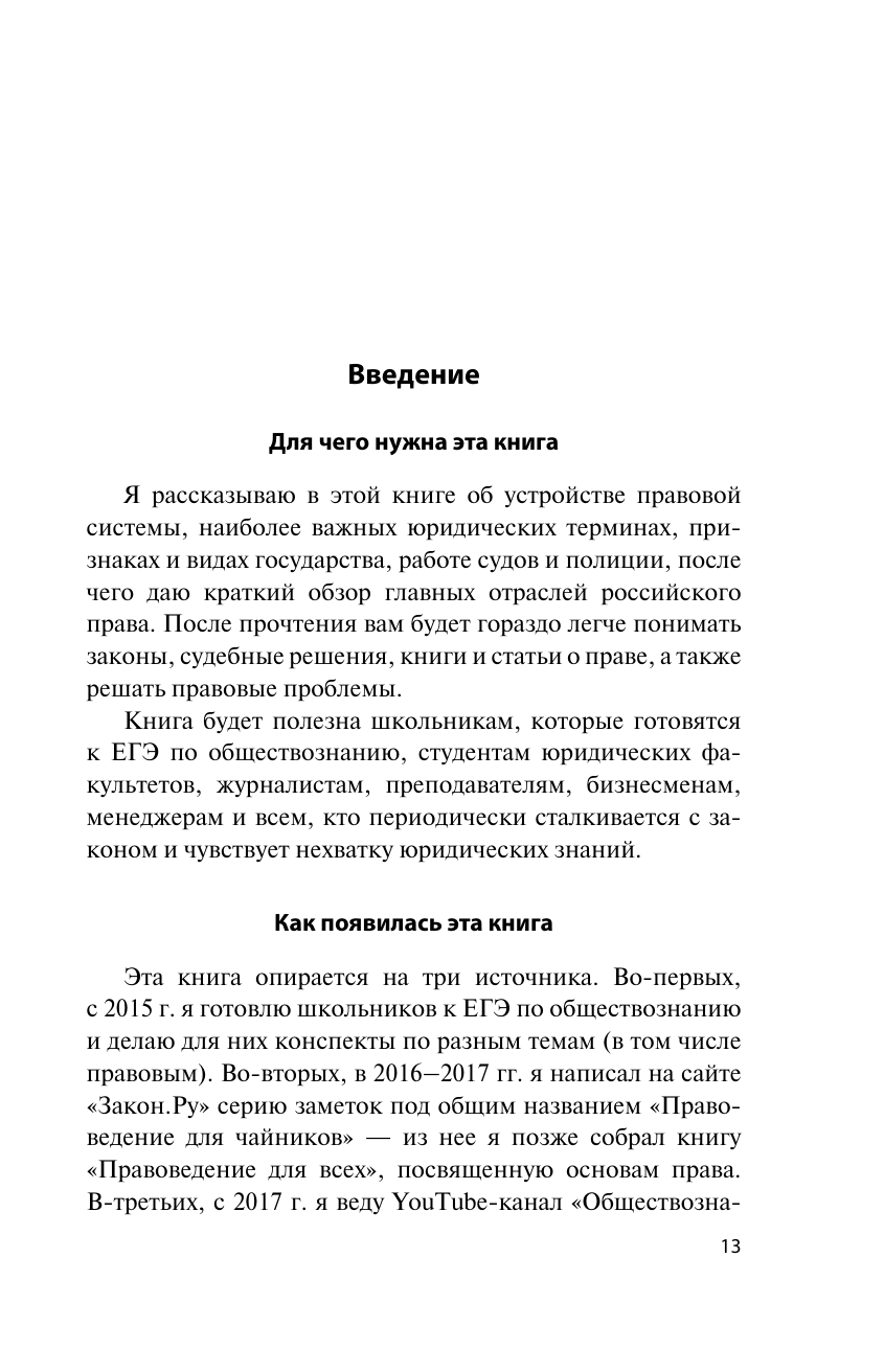 «Как устроено право» пригодится школьникам, сдающим ЕГЭ по обществознанию, студентам-юристам, бизнесменам, журналистам, менеджерам и всем, кто испытывает нехватку юридических знаний. Книга содержит яркие и наглядные примеры из российской действительности. После её прочтения вы будете гораздо лучше понимать законы, судебные решения, книги и статьи о праве, а также решать свои правовые проблемы.