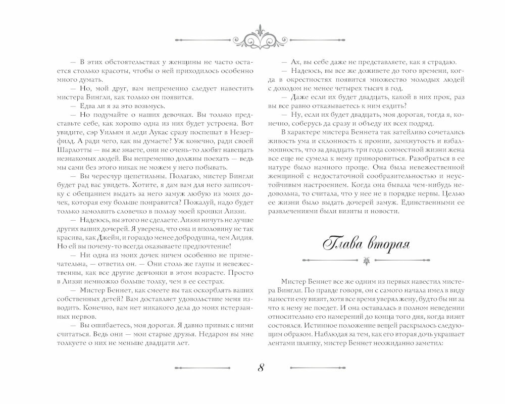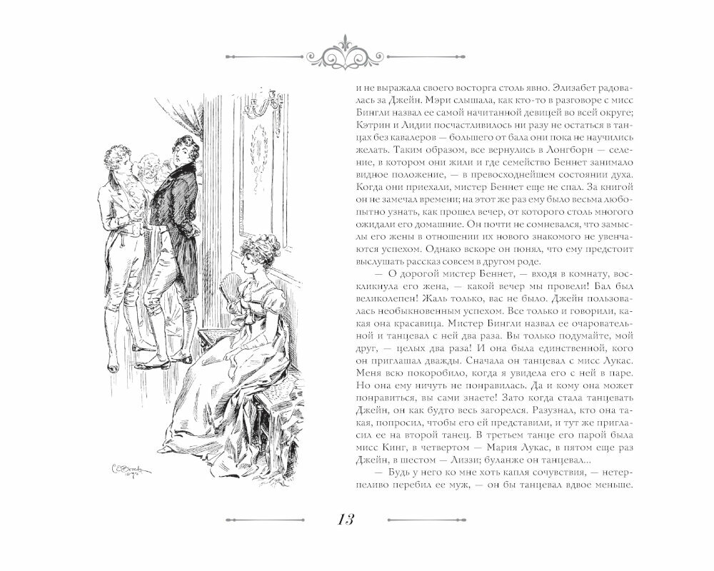 Книги Джейн Остен по всему миру признаны эталоном английской прозы. Они всегда на слуху. «Гордость и предубеждение» — самый популярный женский роман, который множество раз экранизировали и ставили на театральных подмостках, восхищаясь и вдохновляясь прекрасной историей любви, побеждающей любые преграды. В нем очень тонко показаны гордость женщины, зачастую, не позволяющая открыть ей свои истинные чувства и признаться в сокровенных желаниях, предубеждение общества, диктующего правила поведения, влияние людей на мнения и действия других и обретение счастья, несмотря ни на что. Сама писательница признавалась, что произведение вышло слишком «солнечным и искрящимся», хотя она хотела его сделать строже и правильнее. Издание органично дополняют классические иллюстрации Чарльза Брока.